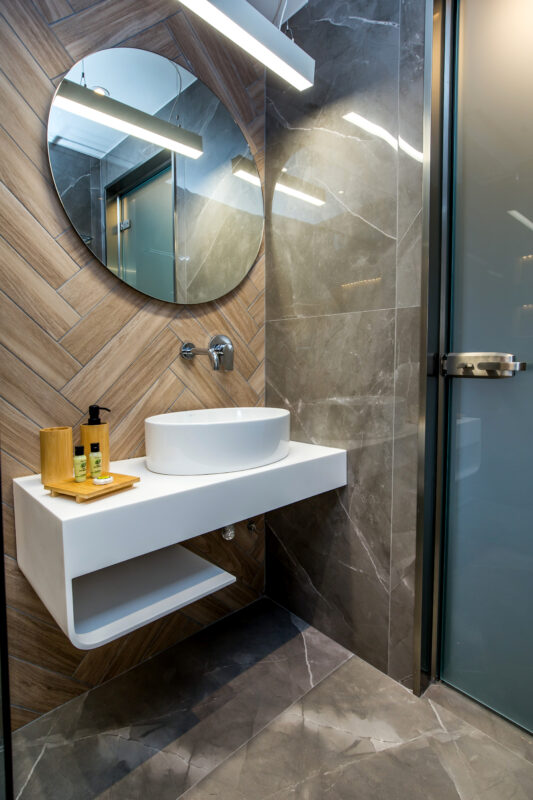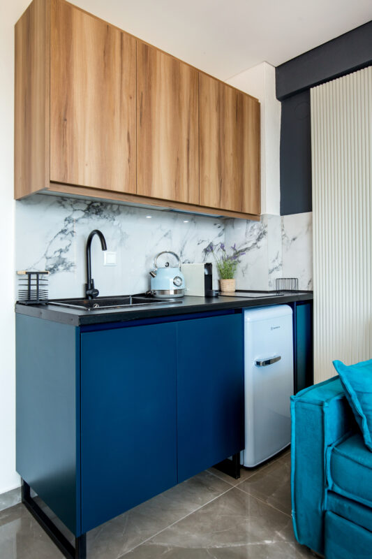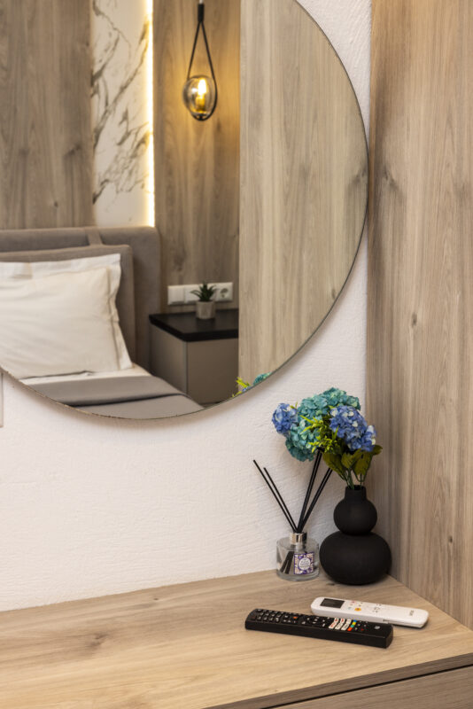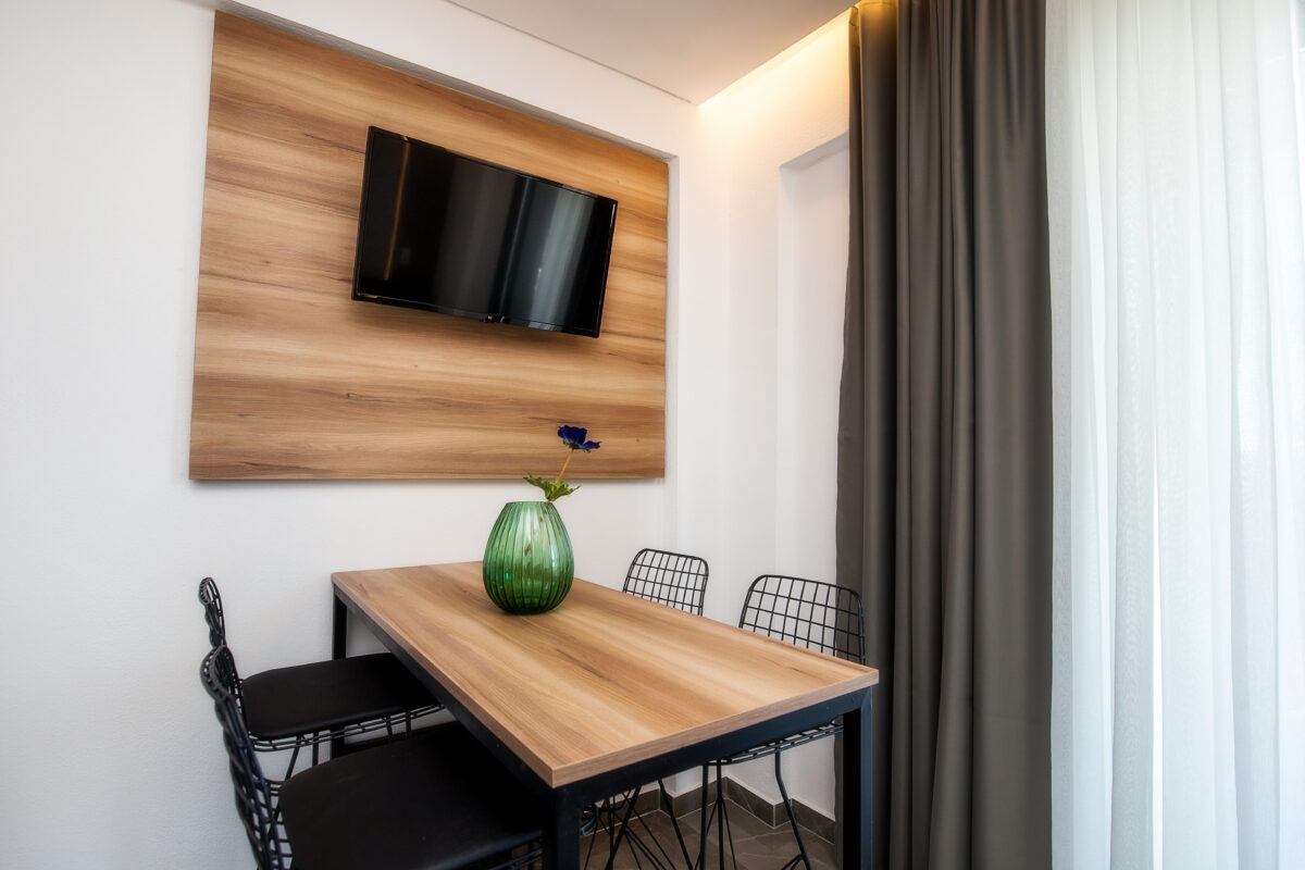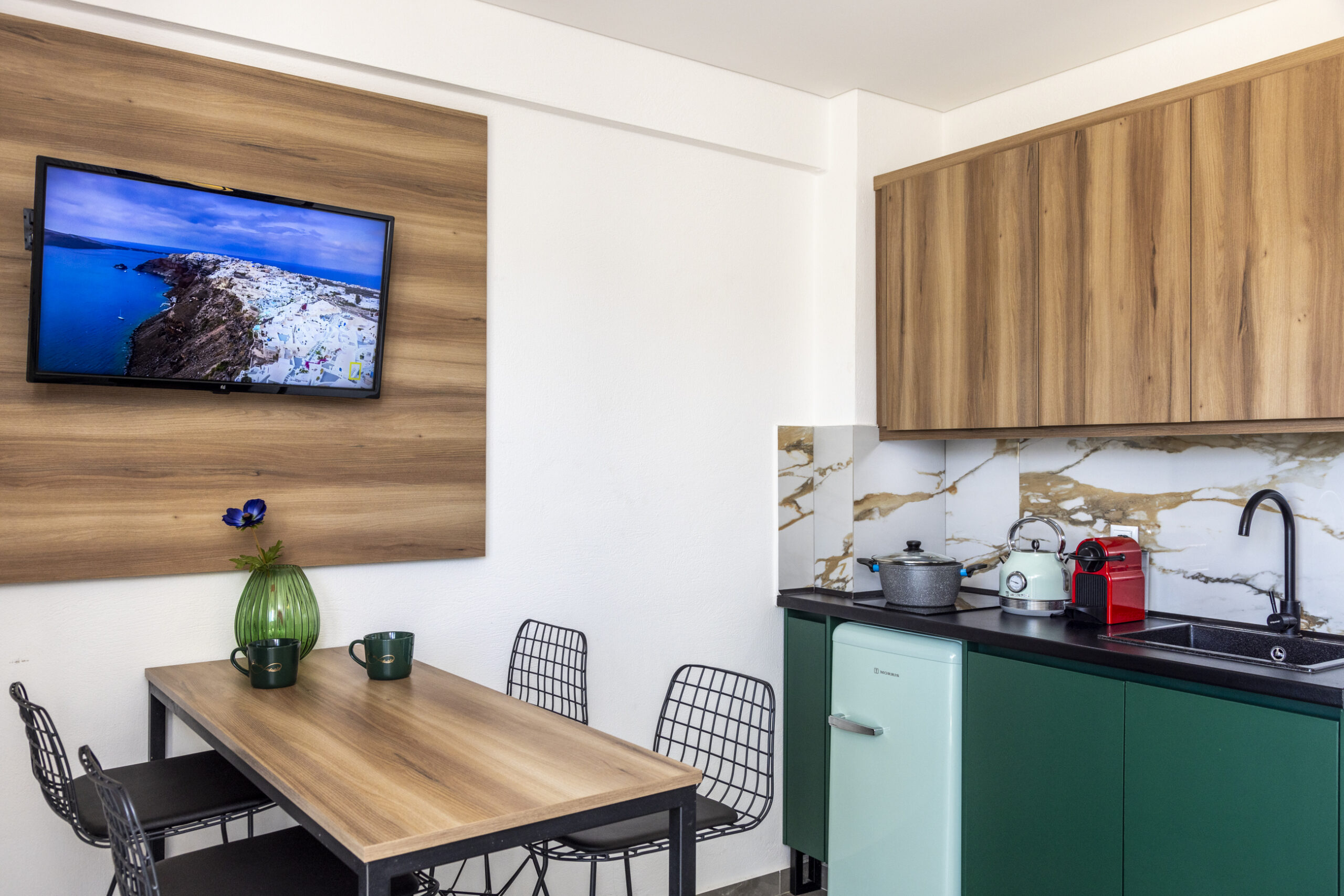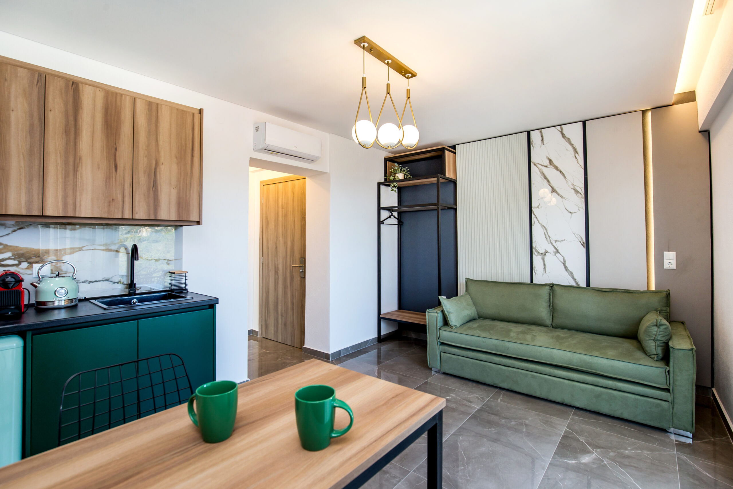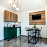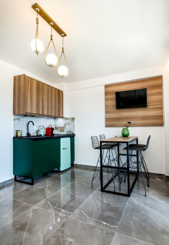 Unitățile de cazare includ aer condiționat, WiFi gratuit și chicinetă complet utilată, oferind independență și confort pe durata sejurului. Fiecare apartament dispune de baie privată modernă, duș și spații bine organizate pentru odihnă și relaxare. Balcoanele și terasele sunt dotate cu mobilier exterior și oferă vedere către mare sau către piscină. Aceste facilități transformă Aigli Skala Maries Deluxe într-o opțiune excelentă pentru turiști care caută cazare premium în Skala Maries.