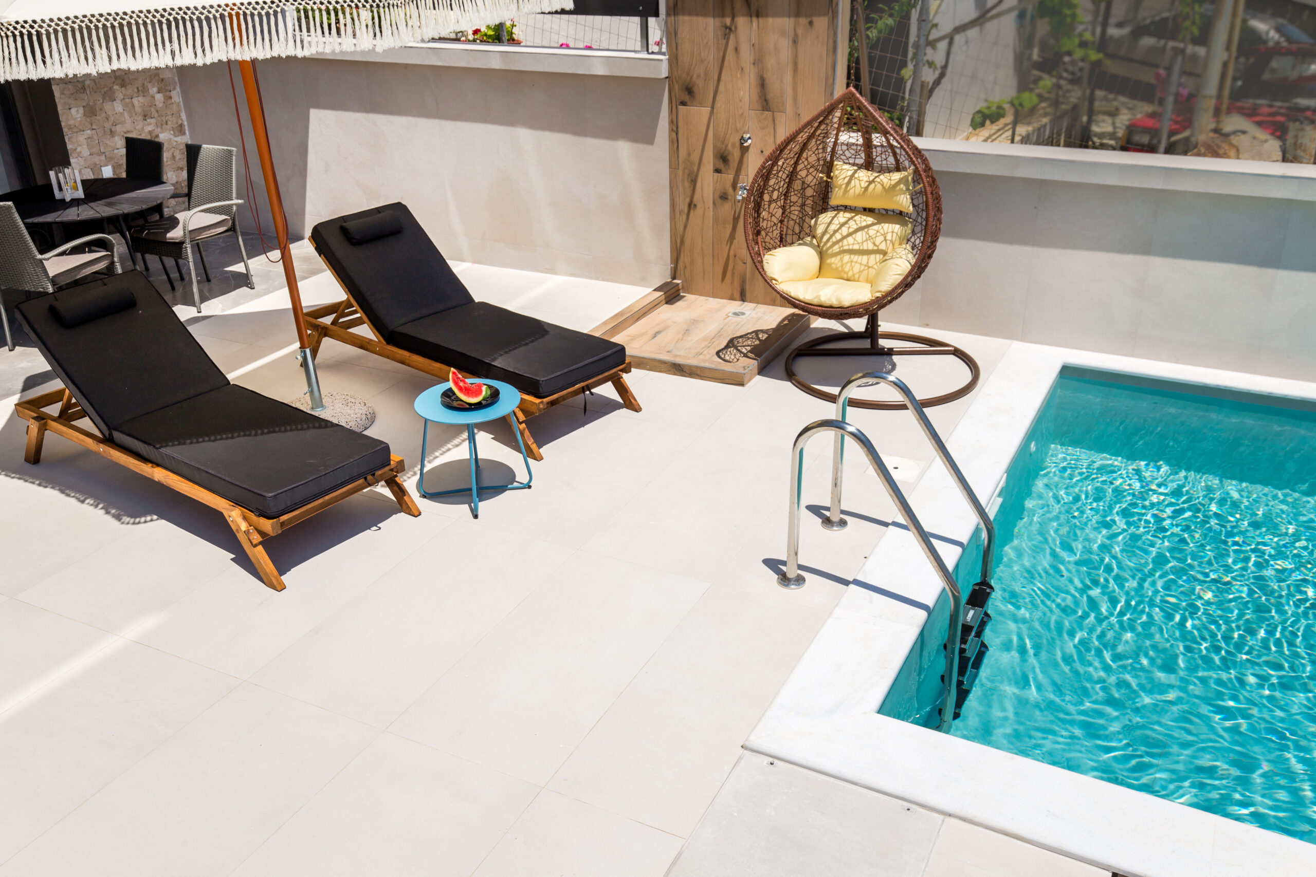 Printre principalele avantaje se numără grădina amenajată, terasa însorită și cele două piscine exterioare sezoniere. Oaspeții pot petrece timp în aer liber, într-un cadru plăcut, ideal pentru relaxare după o zi de plajă. Zona de BBQ este disponibilă pentru cei care preferă mesele pregătite în regim propriu. Proprietatea pune la dispoziție și locuri de parcare gratuite, oferind un plus de confort pentru cei care călătoresc cu mașina.
