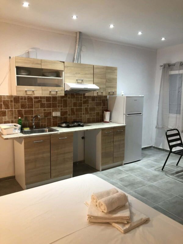 Fiecare studio dispune de bucătărie utilată, frigider și zonă de luat masa. Confortul interior este susținut prin aer condiționat, ventilator și plase de țânțari. Televizorul este disponibil pentru informare și divertisment. Zona de intrare este amenajată cu masă și scaune pentru relaxare în aer liber.