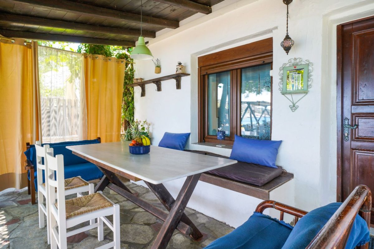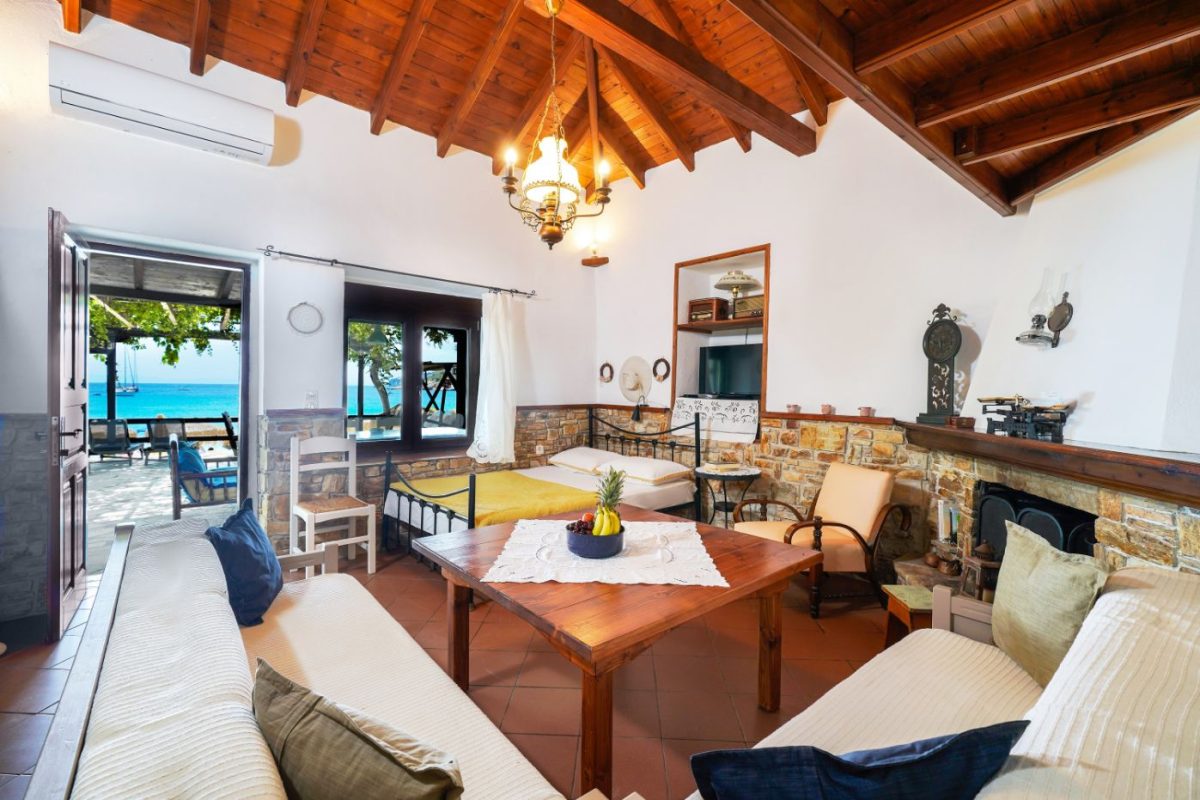Casa 1, amplasată pe malul mării (60 mp), poate găzdui până la 6 persoane și oferă o priveliște unică către mare. Dispune de un dormitor separat cu baie privată și o cameră de zi, o bucătărie complet utilată și o altă baie.