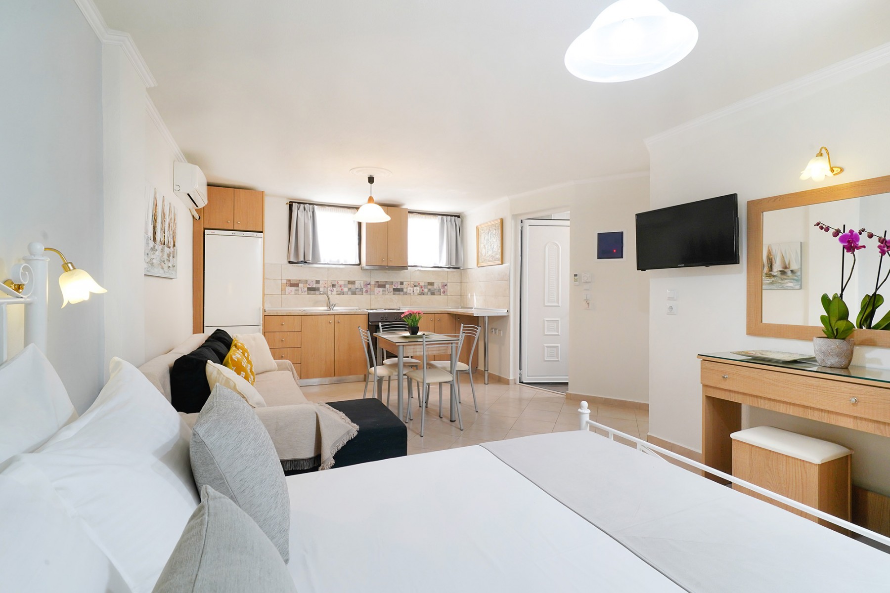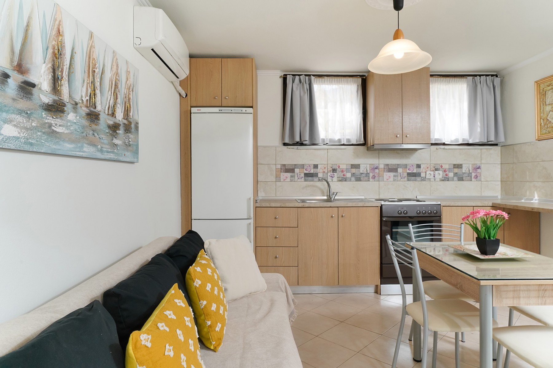 Althea Apartment and Studio oferă cazare modernă în Potamia, cu grădină, parcare, WiFi gratuit, facilități complete și acces rapid la plajă pentru un sejur relaxant.