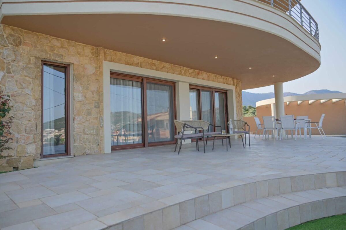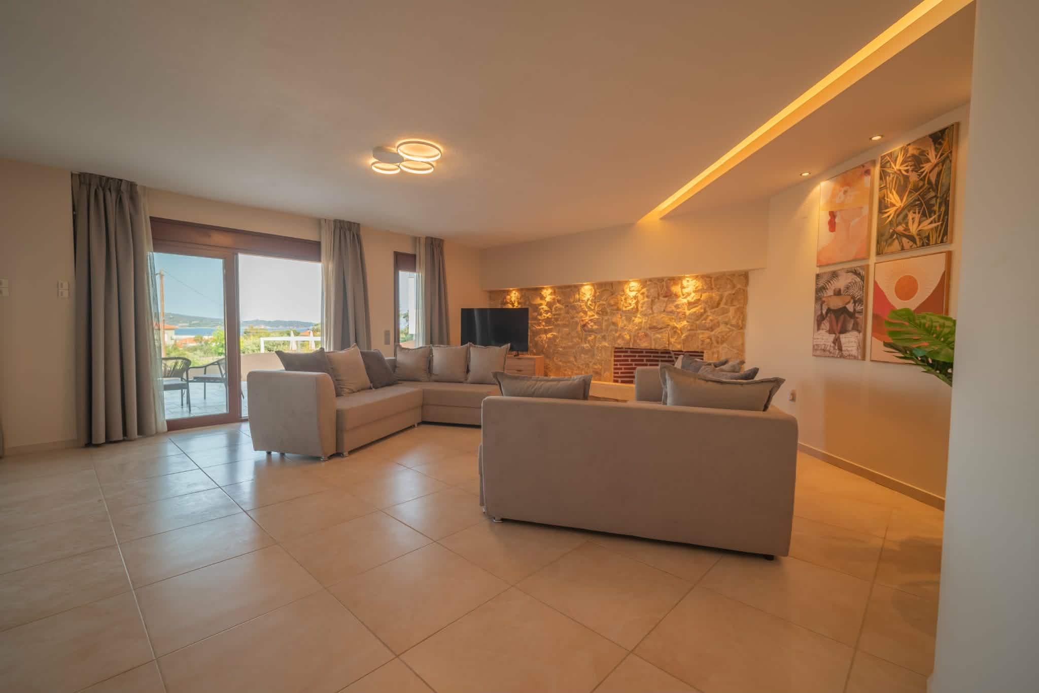 Blionis Sea View Lux Suite Thassos oferă cazare modernă, vedere panoramică, WiFi gratuit, parcare privată, aproape de plaja Limenaria, ideală pentru sejur relaxant și confortabil.