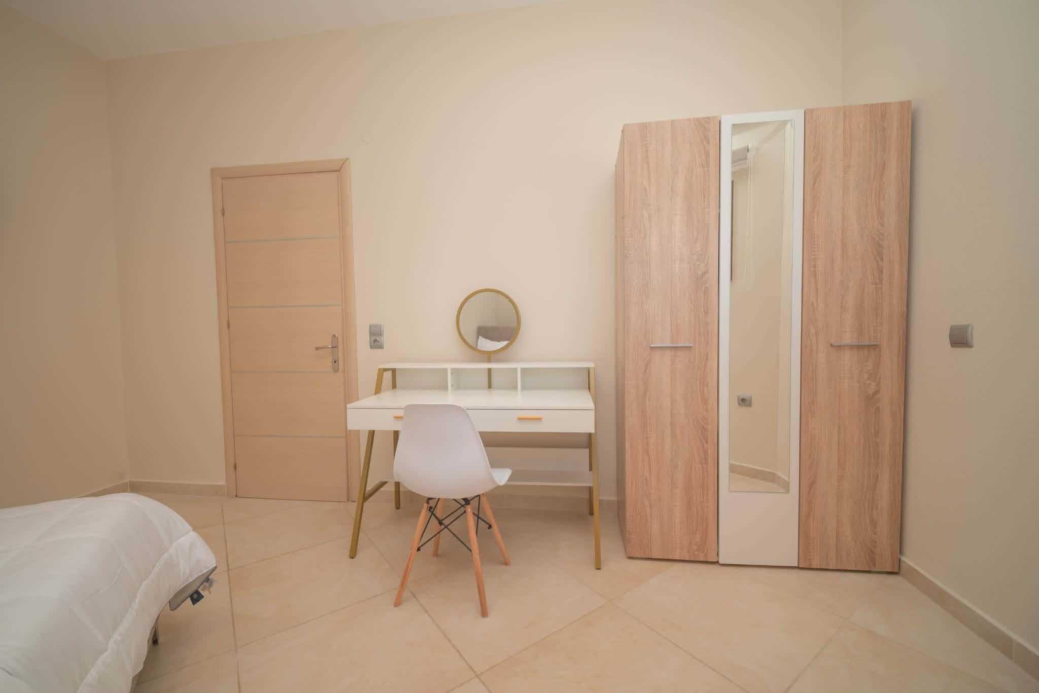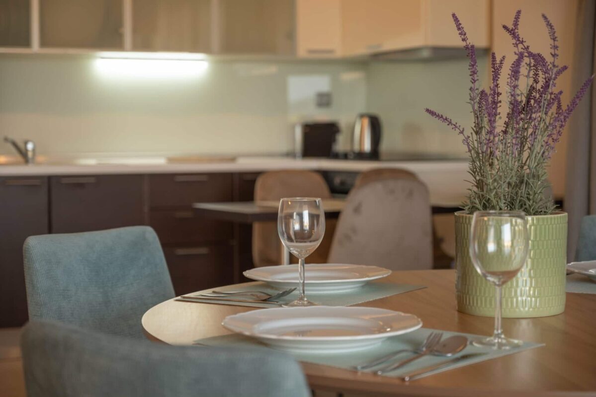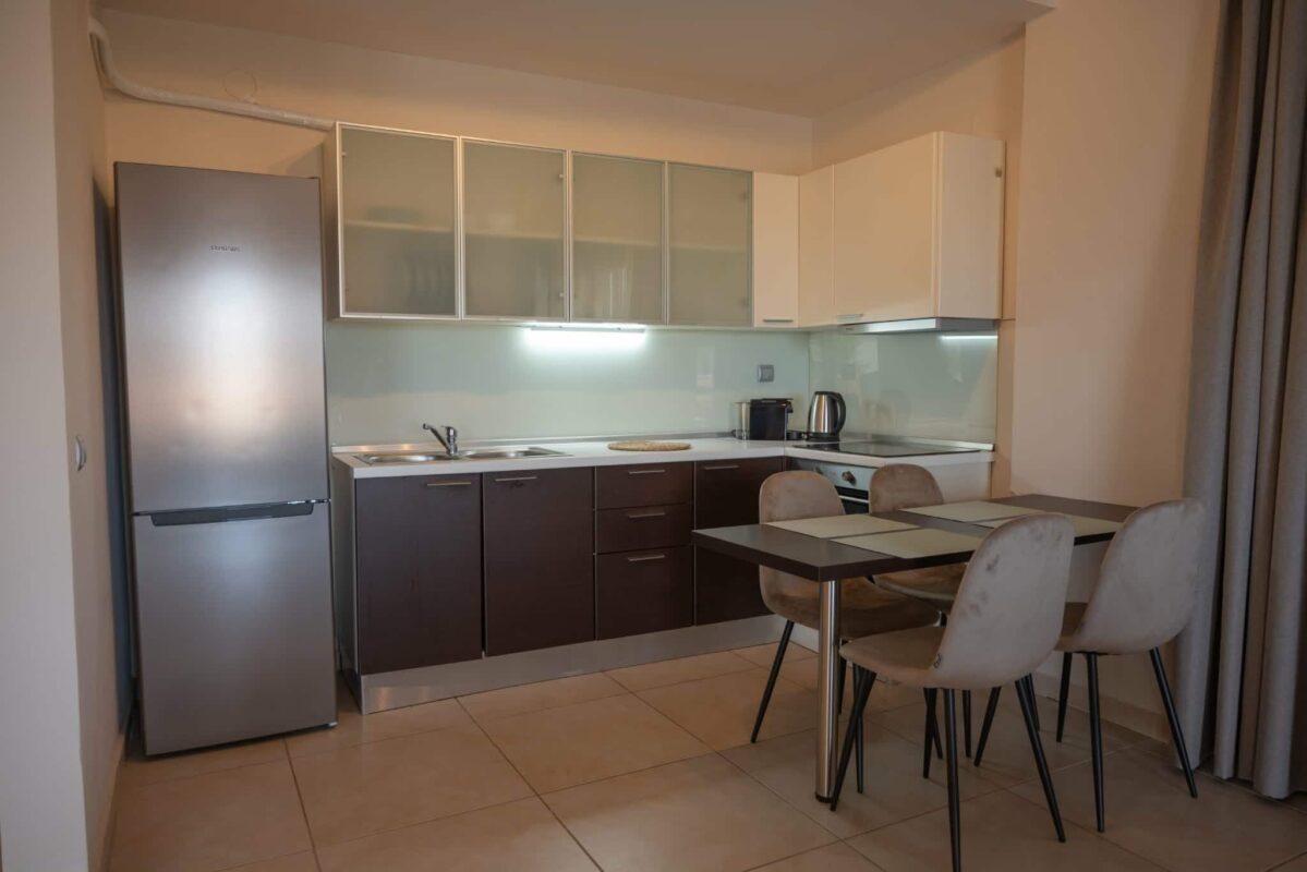 Apartamentul include două dormitoare amenajate eficient, potrivite pentru familii sau grupuri restrânse. Bucătăria complet utilată este dotată cu frigider și cuptor, facilitând prepararea meselor. De asemenea, este disponibilă mașină de spălat, utilă pentru sejururi prelungite. Baia este echipată cu duș, articole de toaletă gratuite și uscător de păr, asigurând condiții optime de igienă.