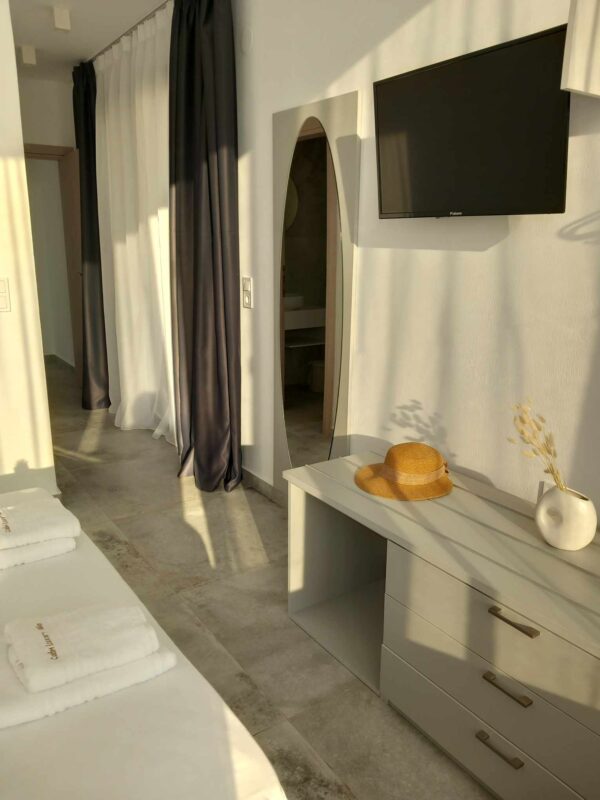 Fiecare vilă are parter și etaj. Sunt 2 dormitoare, 2 băi și living cu zonă de bucătărie complet echipată, inclusiv cu frigider mare.