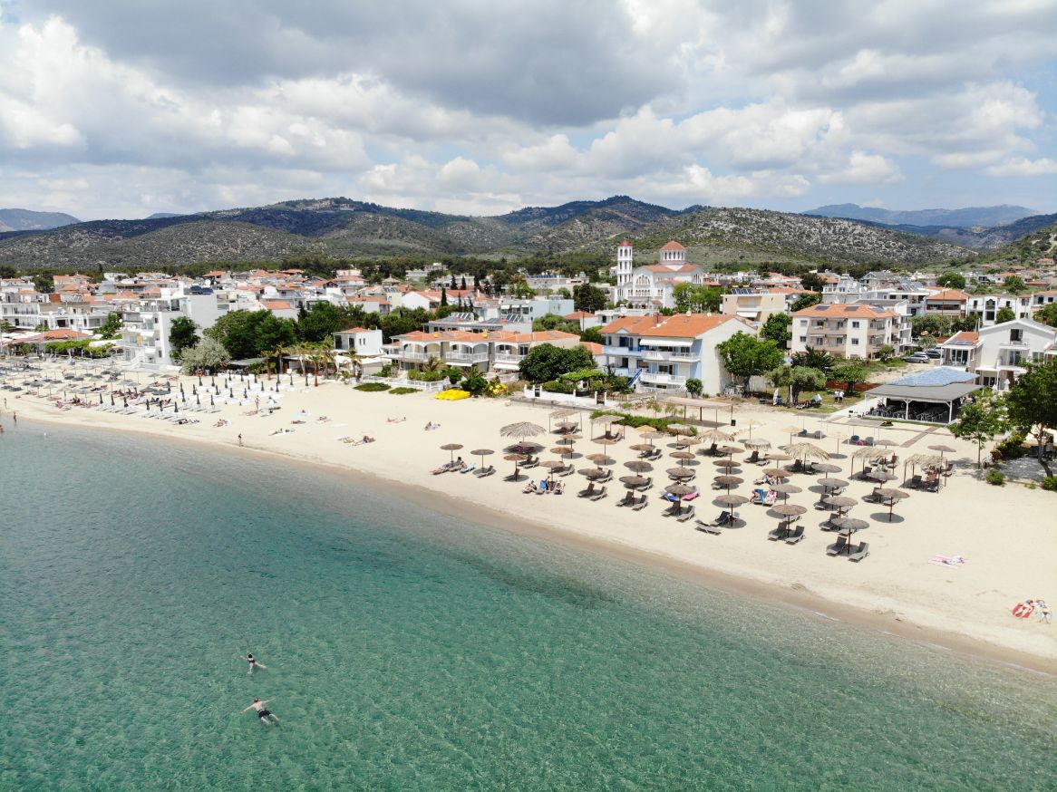 Larga deschidere a plajei conferă un farmec aparte întregului peisaj. Descoperiți un loc unde veți reveni pentru zile plăcute și relaxante pe plaja din Potos!