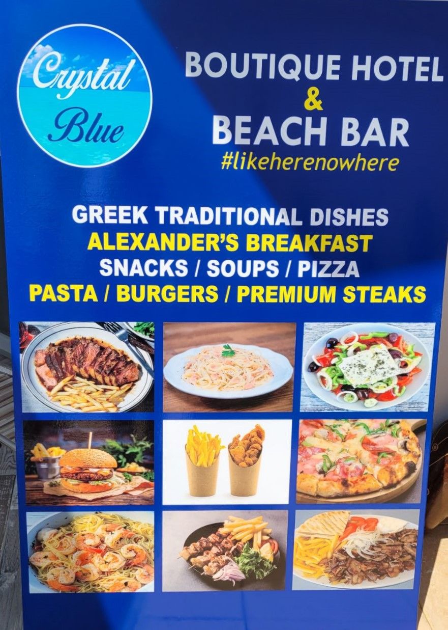 Alegeți Crystal Blue Beach Bar, pentru o zi perfectă la plaja cu nisip și apă cristalină. Muzică bună, gustări speciale și băuturi după preferință, la câțiva pași de centrul stațiunii Potos