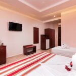Clienții Diamond Hotel beneficiază de diverse opțiuni de cazare, inclusiv camere duble sau triple Deluxe cu vedere la mare și camere duble Deluxe. Fiecare cameră este echipată cu facilități moderne pentru a asigura o ședere plăcută.