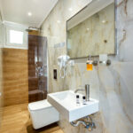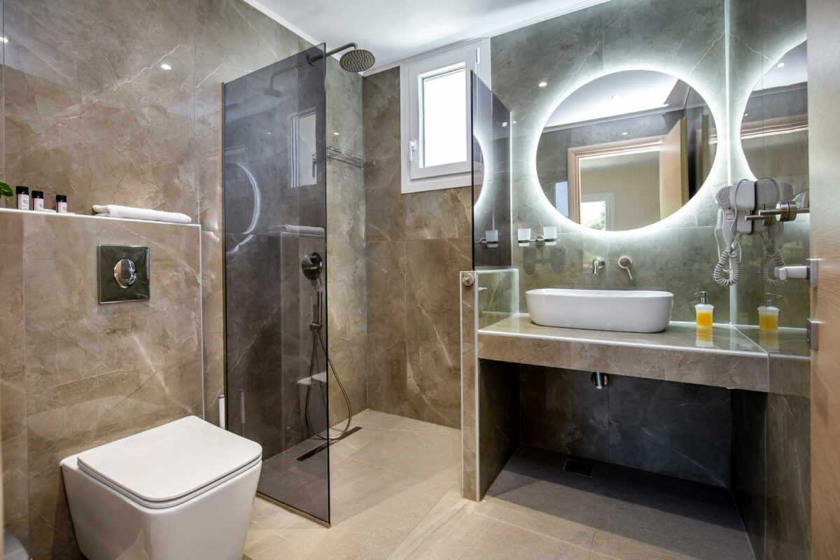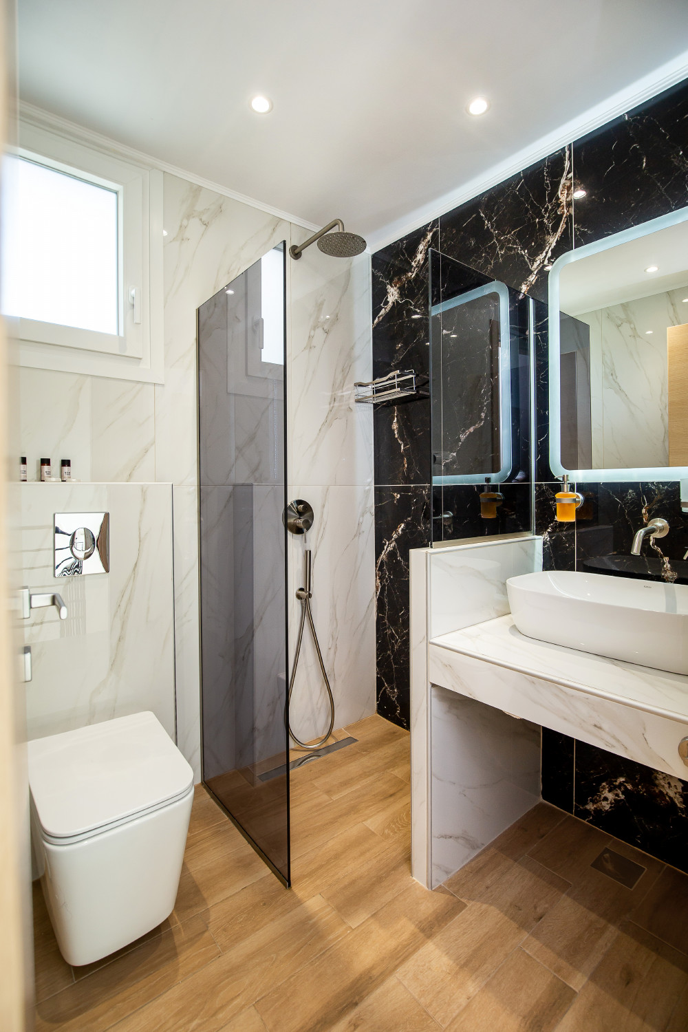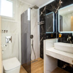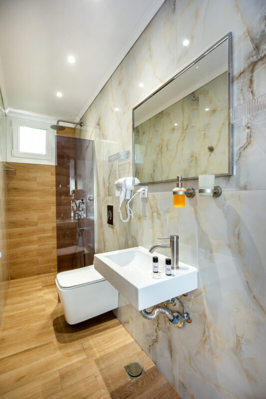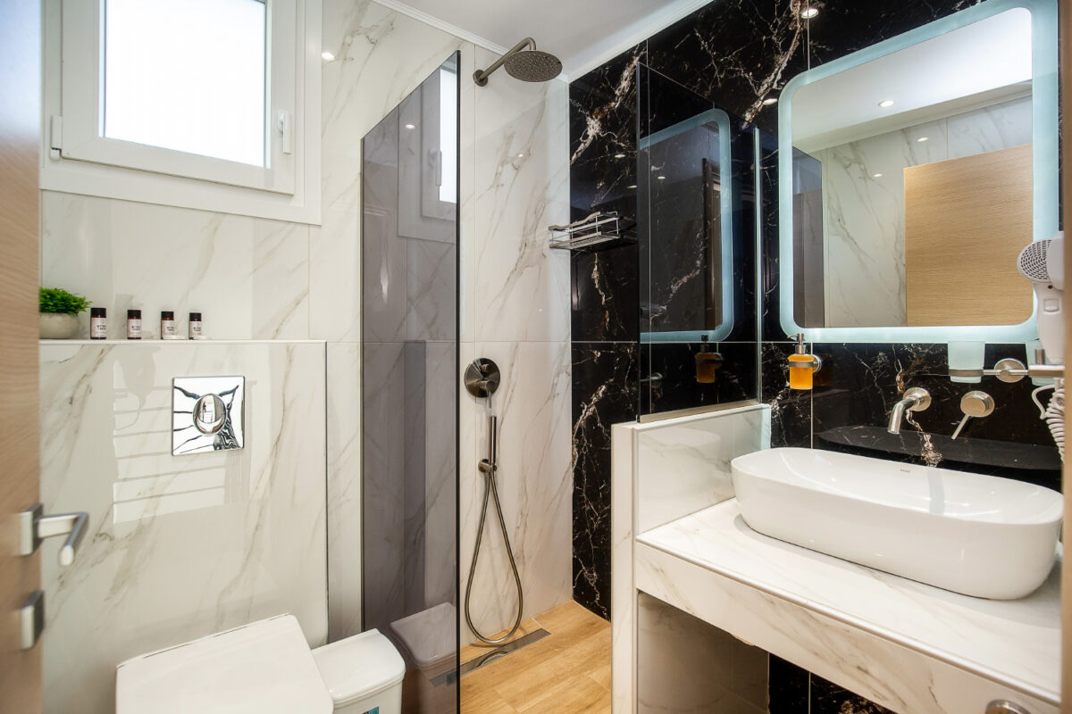 Baia privată are duș, uscător de păr, articole de toaletă.