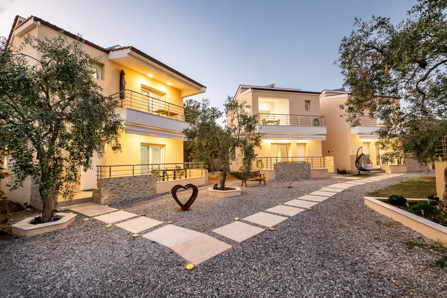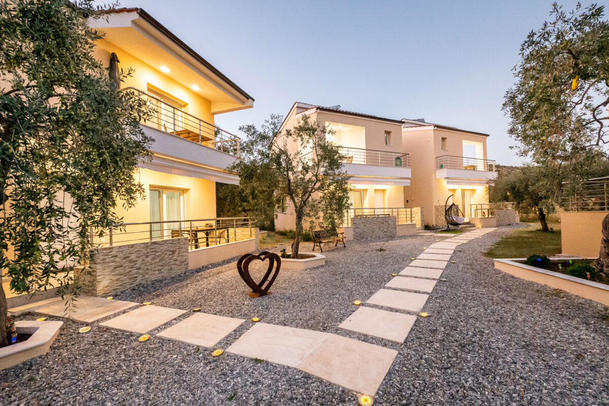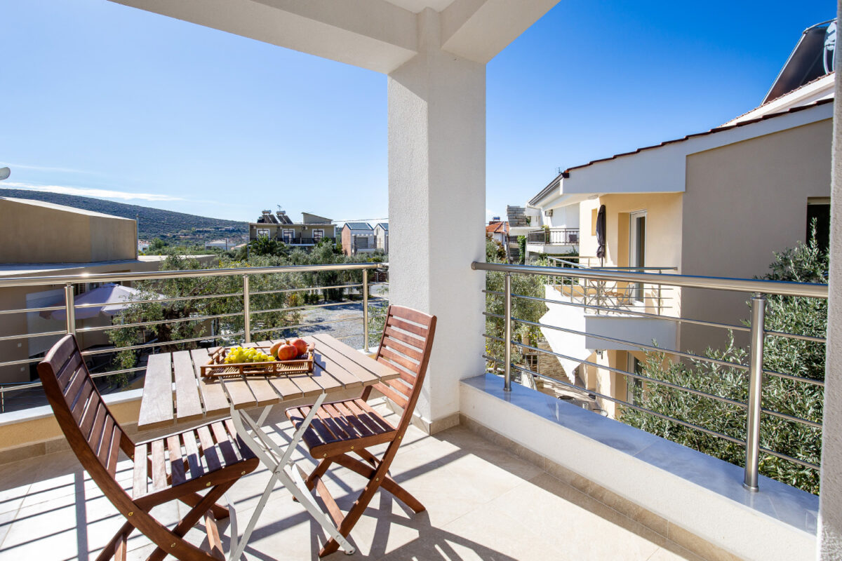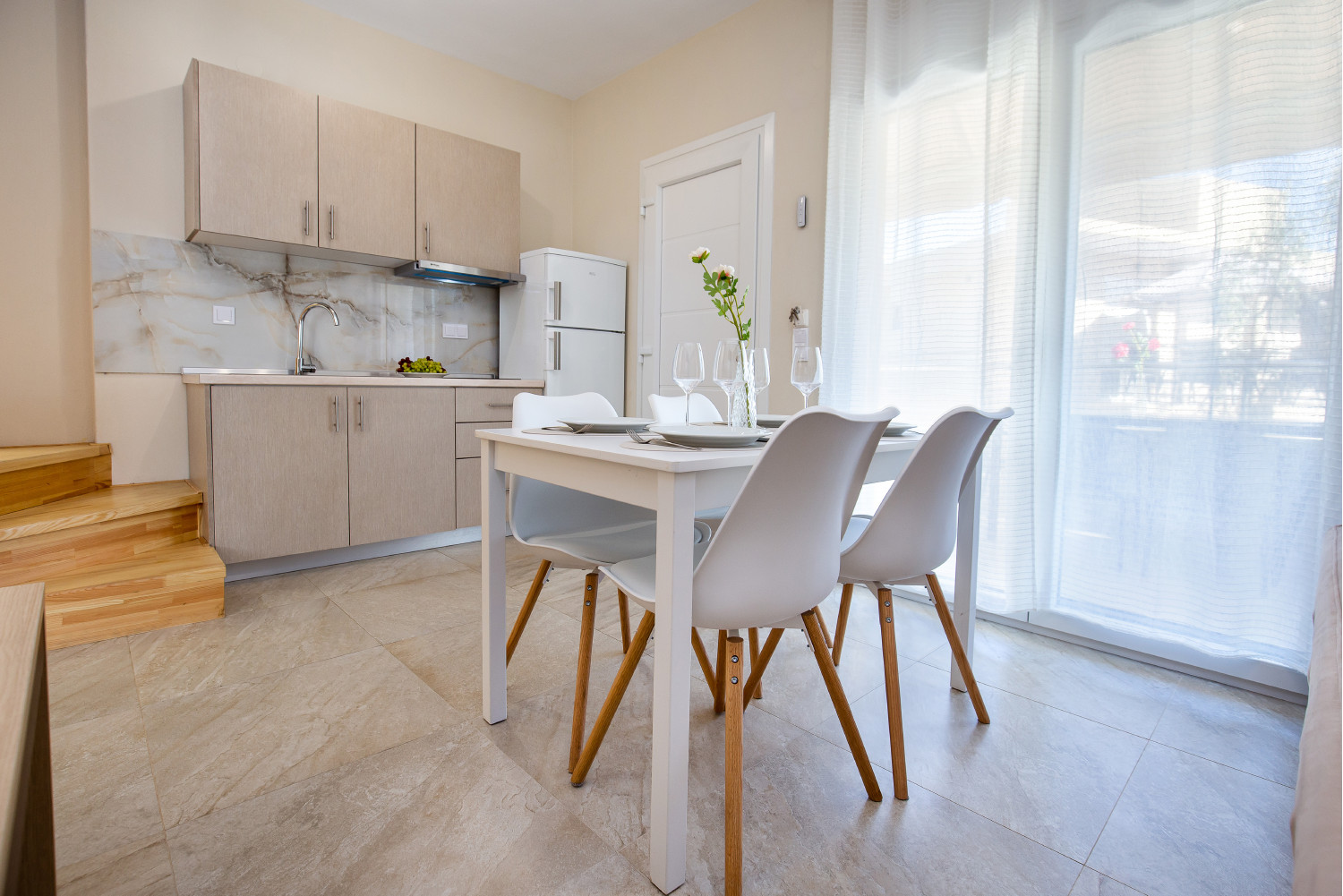 Fiecare apartament dispune de o terasă spațioasă și dotată cu masă și scaune. Astfel, se oferă o vedere plăcută spre grădină și un loc intim pentru a savura momente de liniște sau pentru a vă bucura de o cină sub cerul înstelat.
