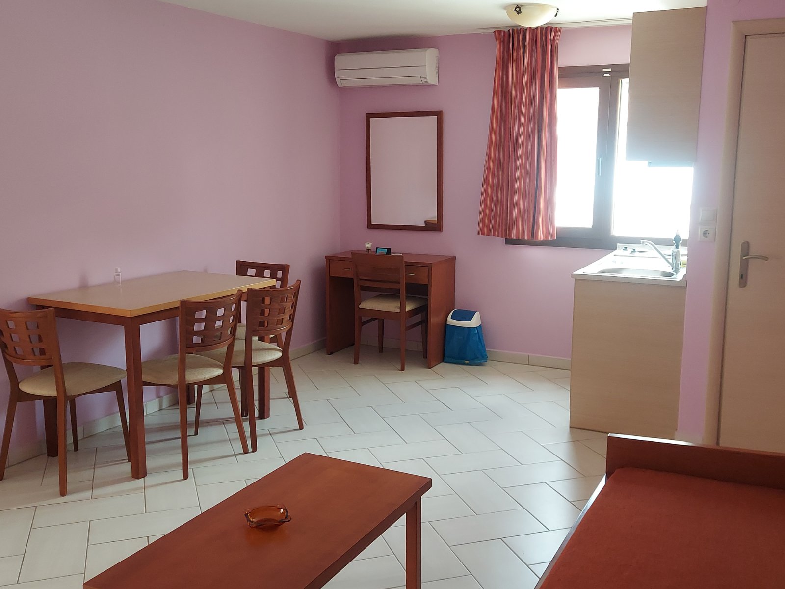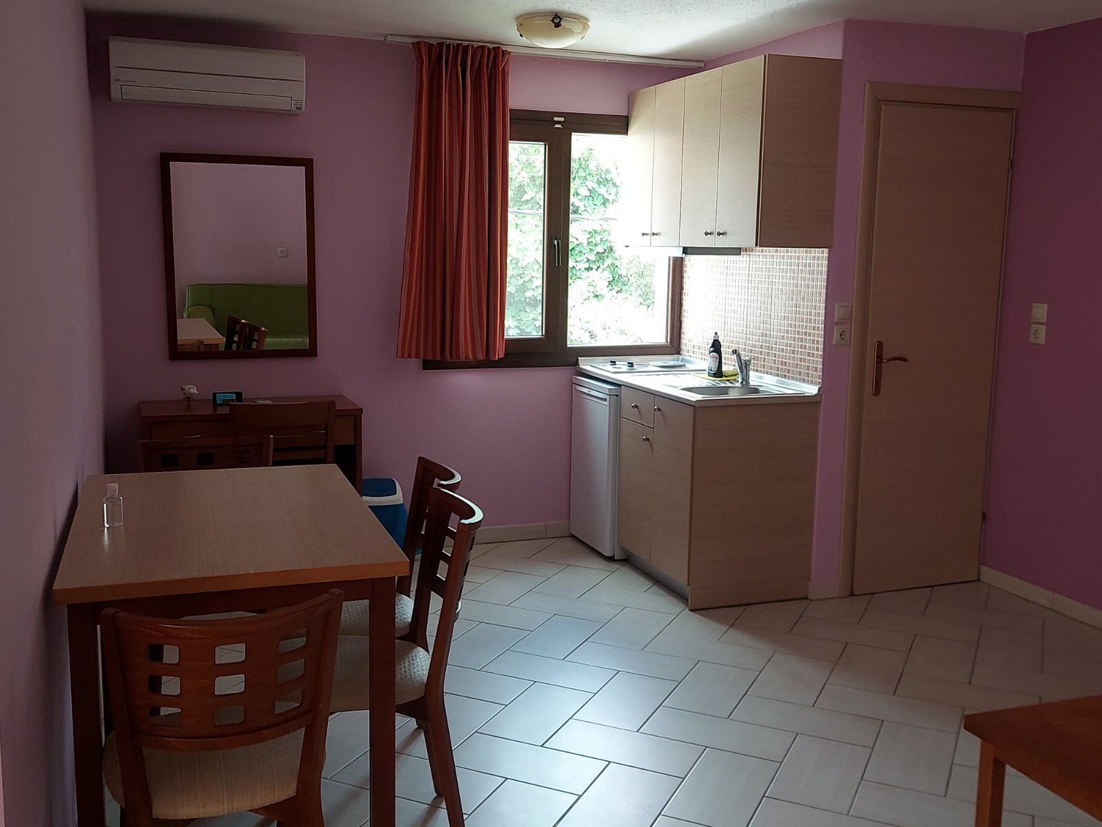 Toate apartamentele și studiourile au în terasa comună propria lor zonă de ședere cu un set de mobilier de grădină.