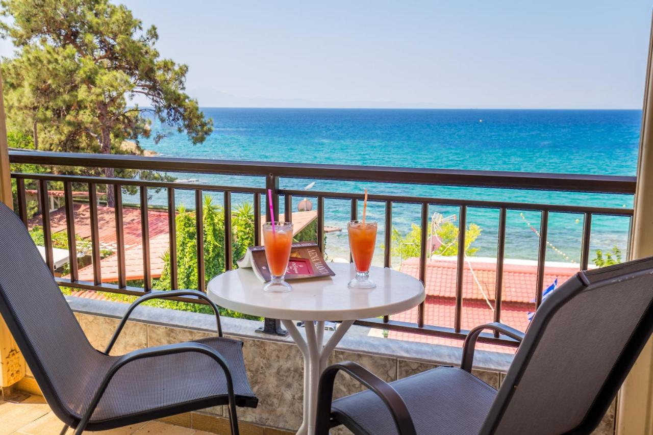 Cazarea la Green Velvet Hotel vă asigură o priveliște magnifică la Marea Egee, beneficiind de o locație privilegiată la doar 20 de metri de plajă.