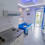 Studiourile, duble, triple și cvadruple sunt complet mobilate, cu vedere la mare sau la munte.