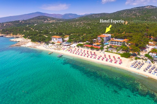Hotel Esperia Thassos oferă cazare lângă plajă Pefkari, camere confortabile cu vedere la mare, acces rapid la litoral, bar și restaurant, ideal pentru vacanță relaxantă în Grecia.