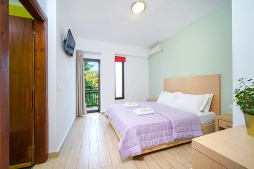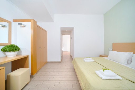 Hotelul pune la dispoziție o varietate de camere, adaptate diferitelor tipuri de turiști. Sunt disponibile camere duble, triple și camere de familie spațioase și bine echipate. Multe dintre unități oferă vedere panoramică către sudul Mării Egee. Facilitățile sunt concepute pentru a asigura confort și funcționalitate pe întreaga durată a sejurului. Spațiile sunt potrivite atât pentru cupluri, cât și pentru grupuri sau familii.