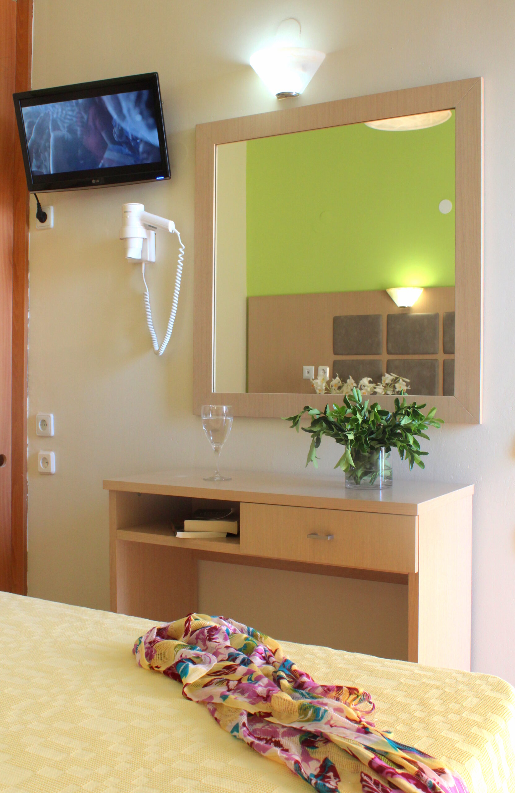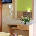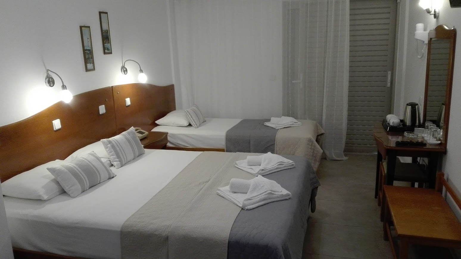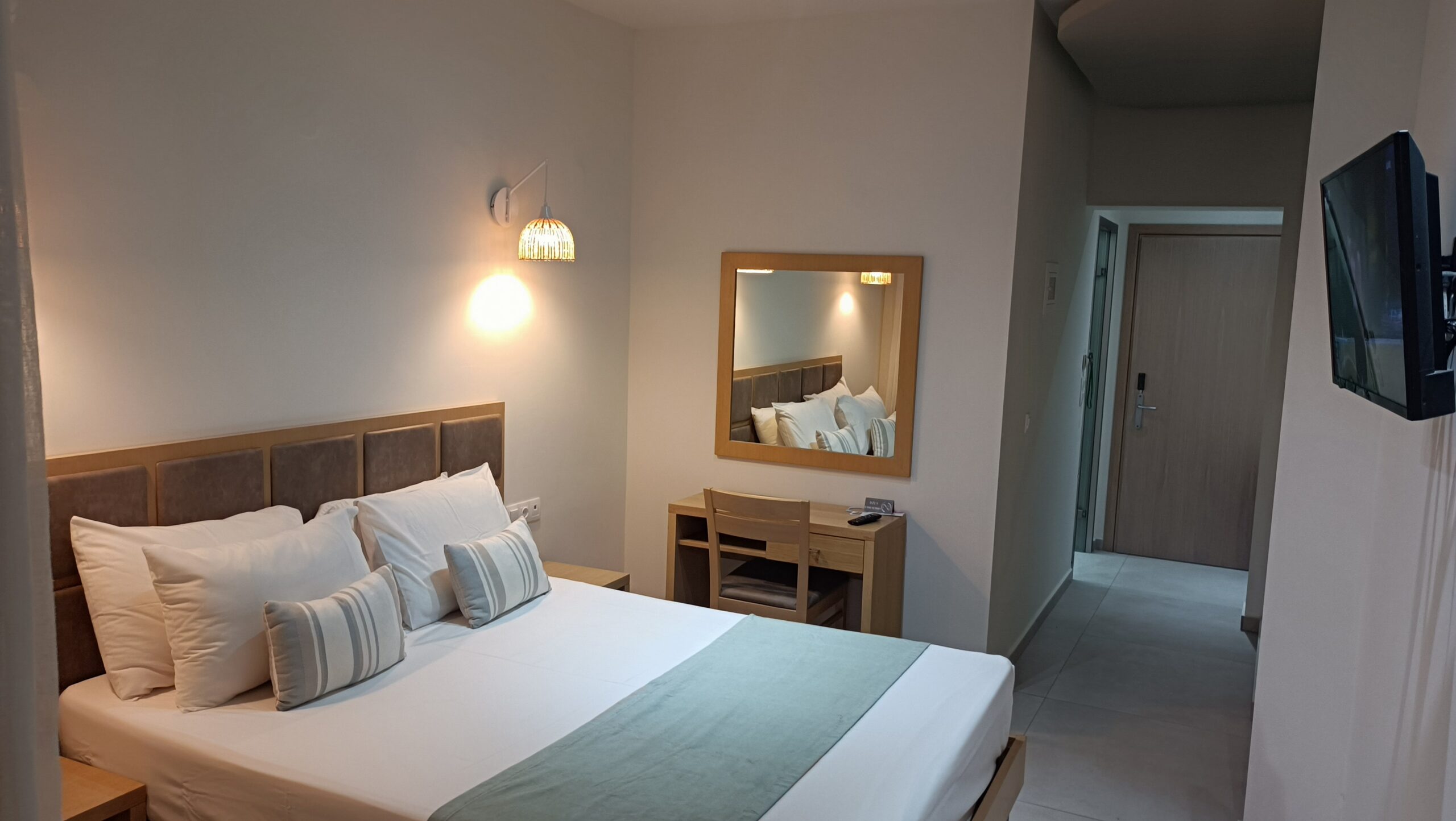 Unitățile de cazare oferă condiții moderne și funcționale pentru un sejur confortabil. Fiecare cameră este dotată cu aer condiționat și balcon privat. Balcoanele oferă vedere către munți sau către Marea Egee. Dotările standard includ televizor cu canale prin satelit și frigider. De asemenea, sunt disponibile seif și uscător de păr. Amenajarea camerelor respectă un stil simplu și practic. Curățenia și confortul sunt priorități constante.