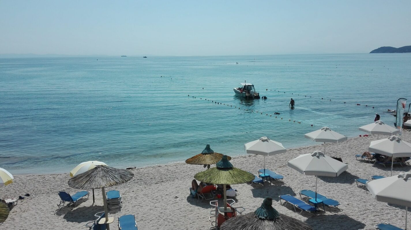 Hotel pe plaja Pefkari, Thassos, ideal pentru vacanțe liniștite, cu piscină, restaurant, facilități familiale, cazare confortabilă și acces direct la mare.