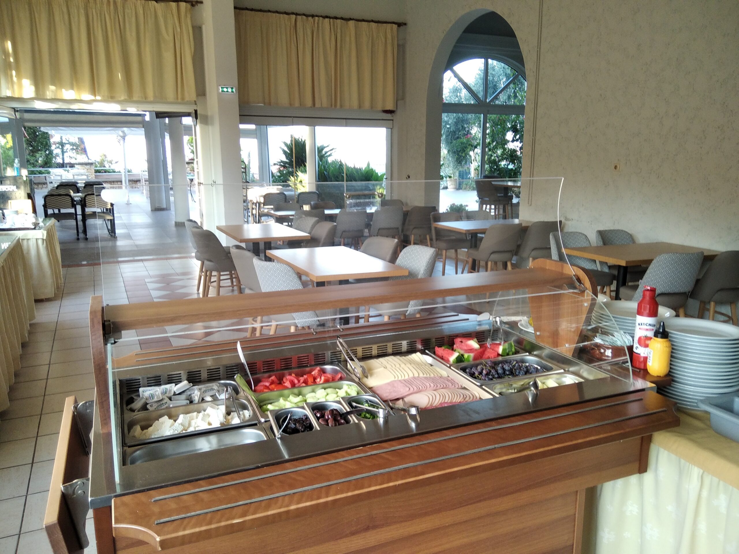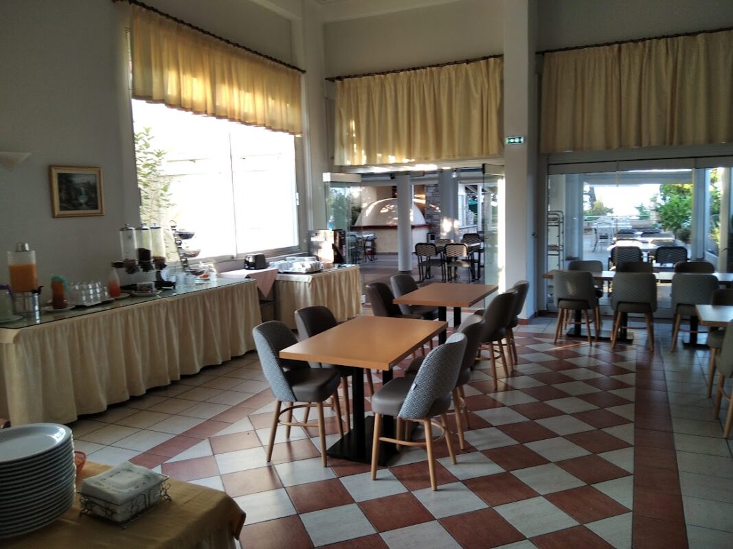 Micul dejun este servit zilnic sub formă de bufet continental, într-o zonă dedicată. Oferta culinară include produse variate, potrivite pentru toate preferințele. Barul de pe plajă oferă cafea, gustări ușoare și băuturi răcoritoare. Restaurantul hotelului propune preparate din bucătăria grecească și mediteraneană. Prânzul și cina pot fi savurate într-un cadru relaxant. Ingredientele utilizate sunt specifice gastronomiei locale. Experiența culinară completează sejurul turistic.