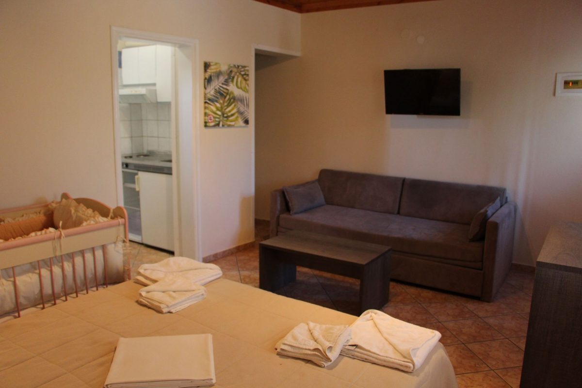 Vila Iatrou impresionează prin locația sa privilegiată, prin confort și eleganță. Oaspeții pot alege între cele 7 apartamente spațioase, cu o suprafață de 50 m², potrivite pentru 4 adulți și 2 copii, sau cele 4 garsoniere de 40 m², ideale pentru 3 adulți și 2 copii. Fiecare unitate locativă este complet echipată cu o chicinetă dotată cu plită, frigider și ustensile de bucătărie.