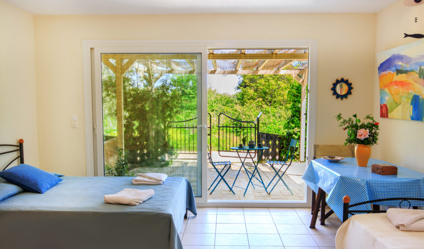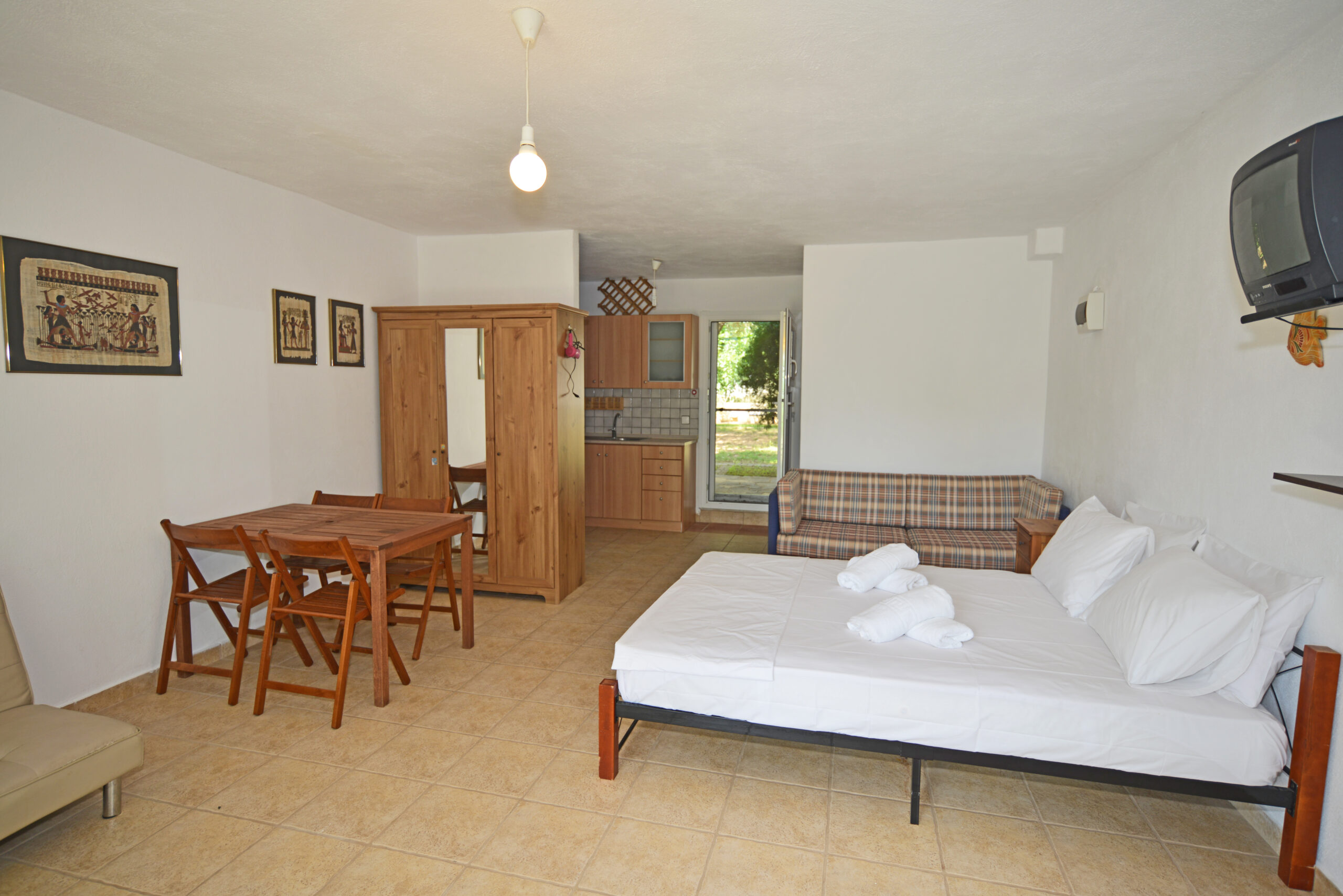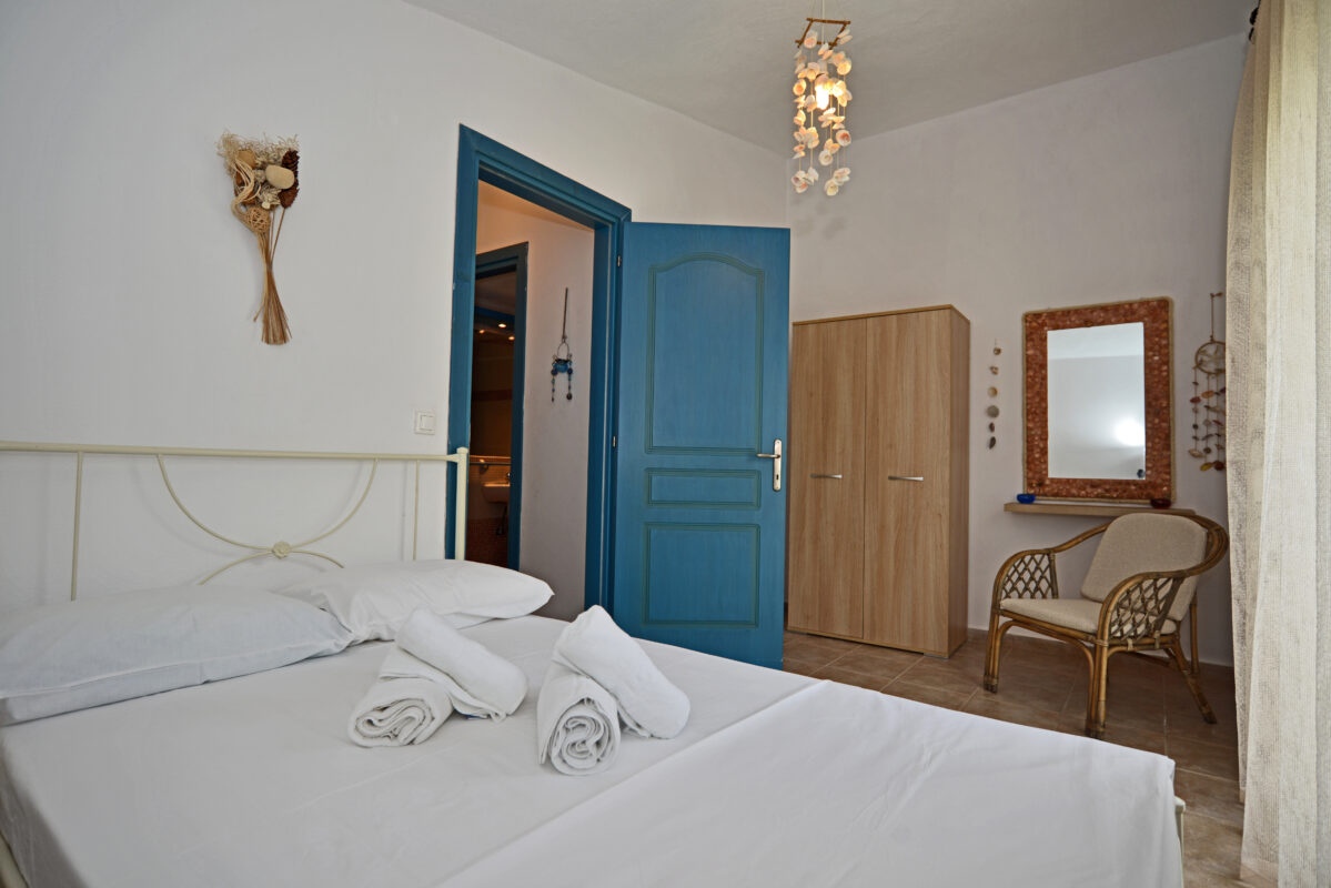 Apartamentul cu două dormitoare este configurat pentru eficiență și confort. Primul dormitor este dotat cu un pat dublu. Al doilea dormitor dispune de un pat dublu similar. Zona de living include o canapea extensibilă. Aceasta poate fi utilizată pentru cazare suplimentară. Structura este ideală pentru familii sau grupuri mici. Locația din Skala Potamia facilitează accesul către plaje și atracții locale. Iris Maisonettes and Studios este o alegere practică pentru cazare în Thassos. Această proprietate îmbină funcționalitatea cu un cadru natural plăcut.