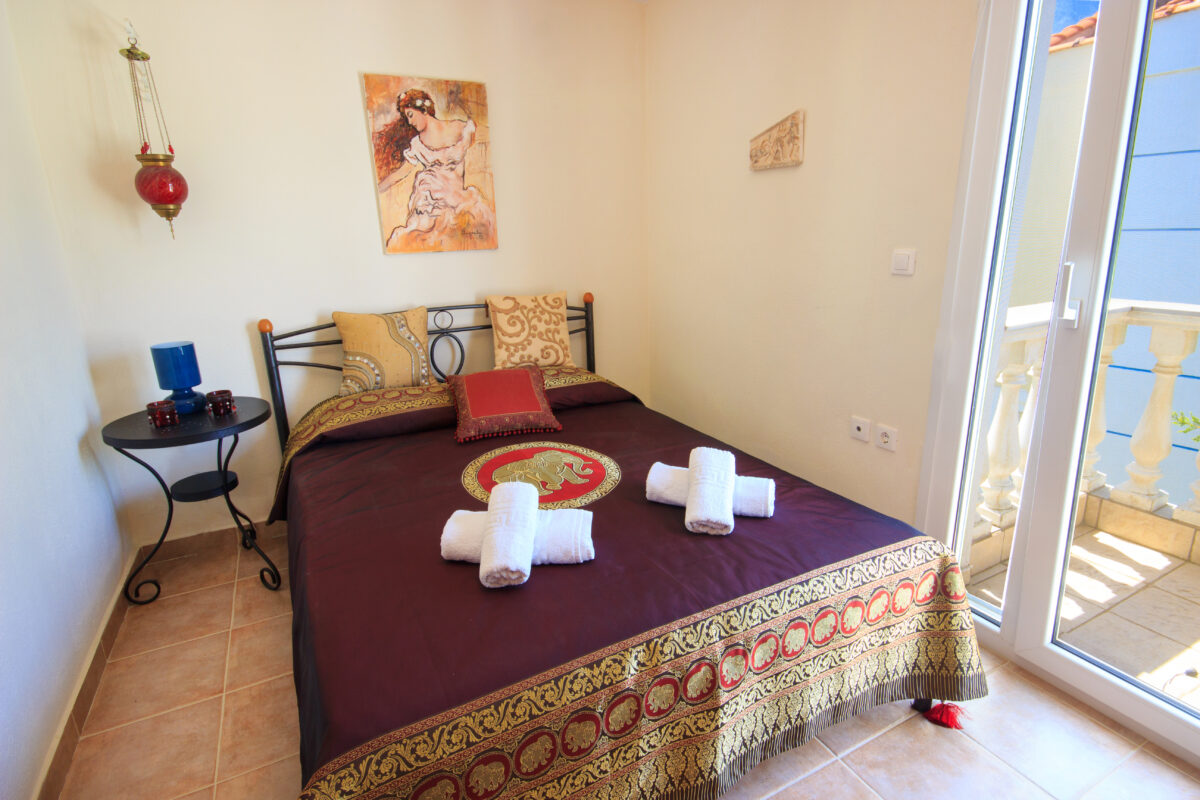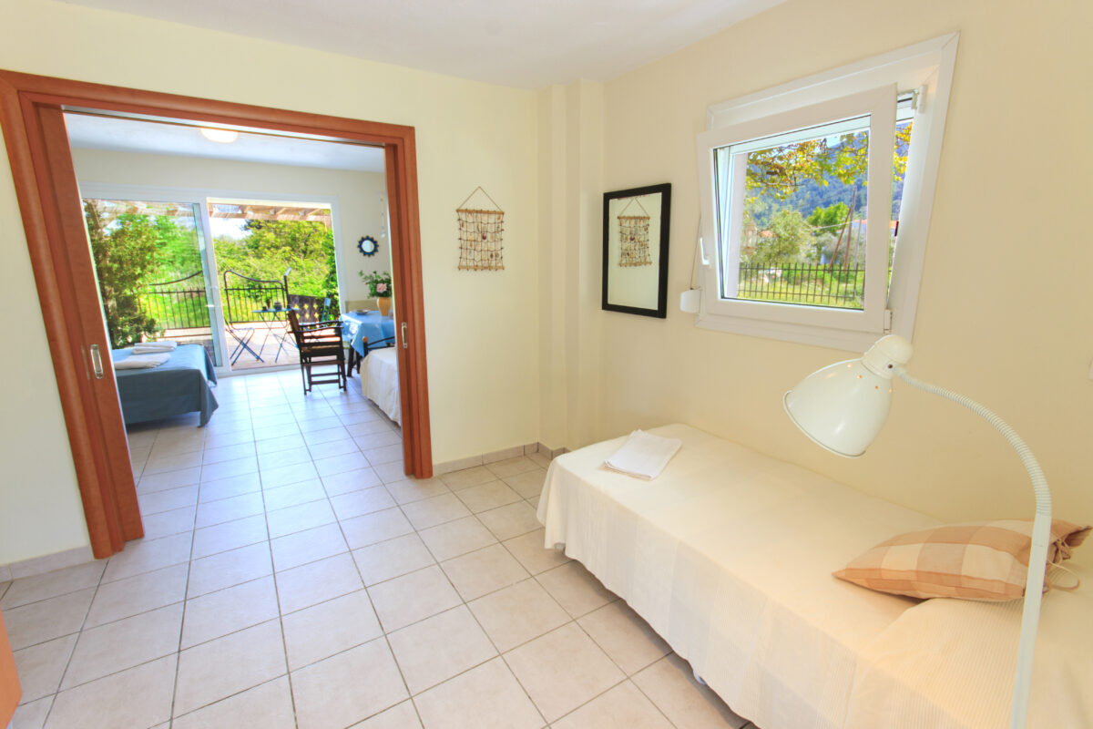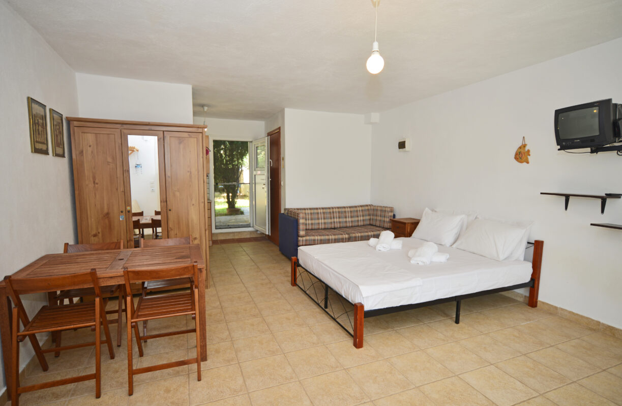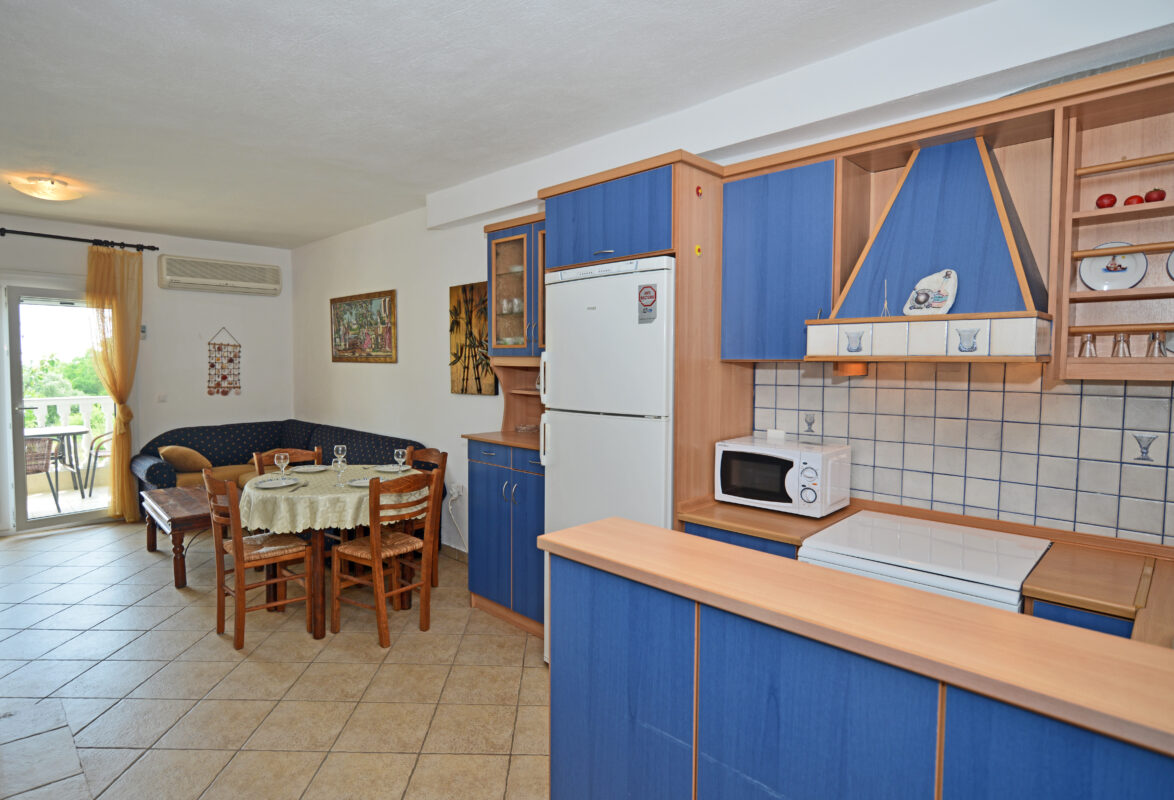 Apartamentul cu două dormitoare este configurat pentru eficiență și confort. Primul dormitor este dotat cu un pat dublu. Al doilea dormitor dispune de un pat dublu similar. Zona de living include o canapea extensibilă. Aceasta poate fi utilizată pentru cazare suplimentară. Structura este ideală pentru familii sau grupuri mici. Locația din Skala Potamia facilitează accesul către plaje și atracții locale. Iris Maisonettes and Studios este o alegere practică pentru cazare în Thassos. Această proprietate îmbină funcționalitatea cu un cadru natural plăcut.