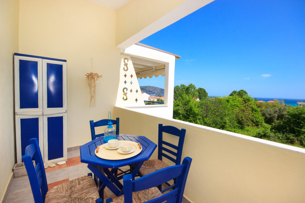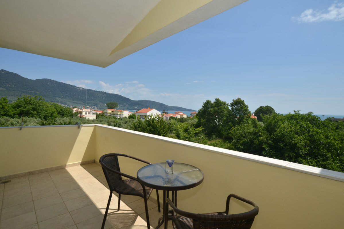 Spațiile exterioare completează experiența de cazare din Skala Potamia, Thassos. Proprietatea este înconjurată de o grădină bine întreținută. Terasa oferă priveliști plăcute către munte. Aceasta este ideală pentru momente de relaxare zilnică. Balconul fiecărui apartament asigură un spațiu suplimentar de recreere. Zona exterioară este potrivită pentru familii cu copii. Accesul la internet WiFi gratuit este disponibil în întreaga proprietate. Conectivitatea permanentă este asigurată pentru activități personale sau profesionale. Atmosfera generală este una liniștită și ordonată.