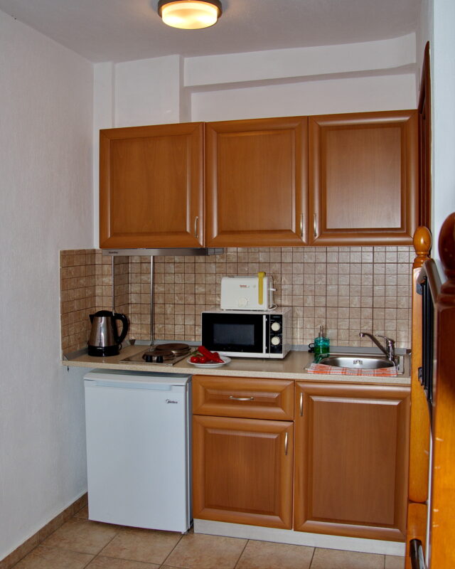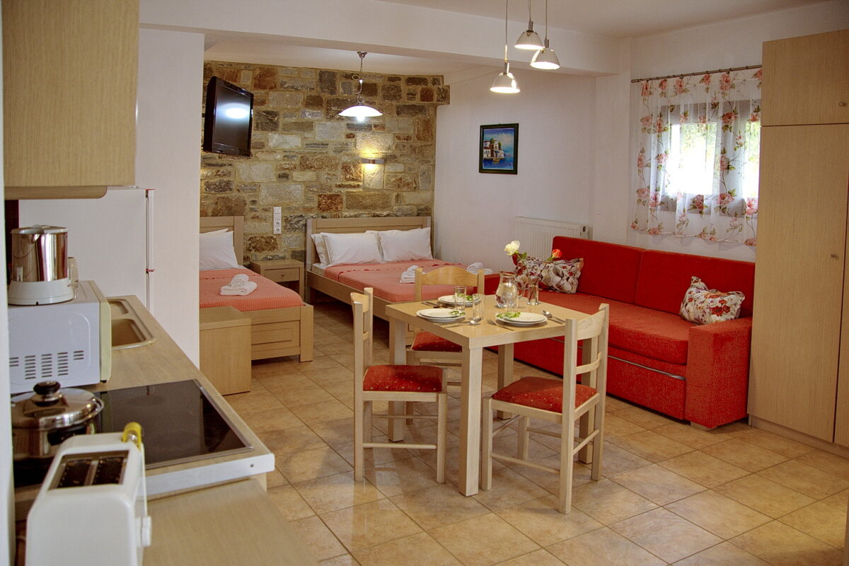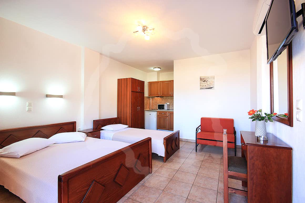 Studiourile sunt variate ca structură și capacitate, fiind potrivite pentru cupluri sau familii. Studioul I oferă un pat dublu și spațiu optimizat. Studioul II include un pat dublu și un pat single. Studiourile III și IV sunt dotate cu un pat dublu și două paturi single. Toate unitățile dispun de balcon privat și bucătărie proprie. Configurațiile permit flexibilitate pentru diverse tipuri de turiști.