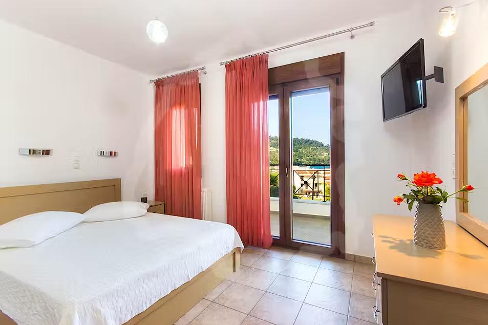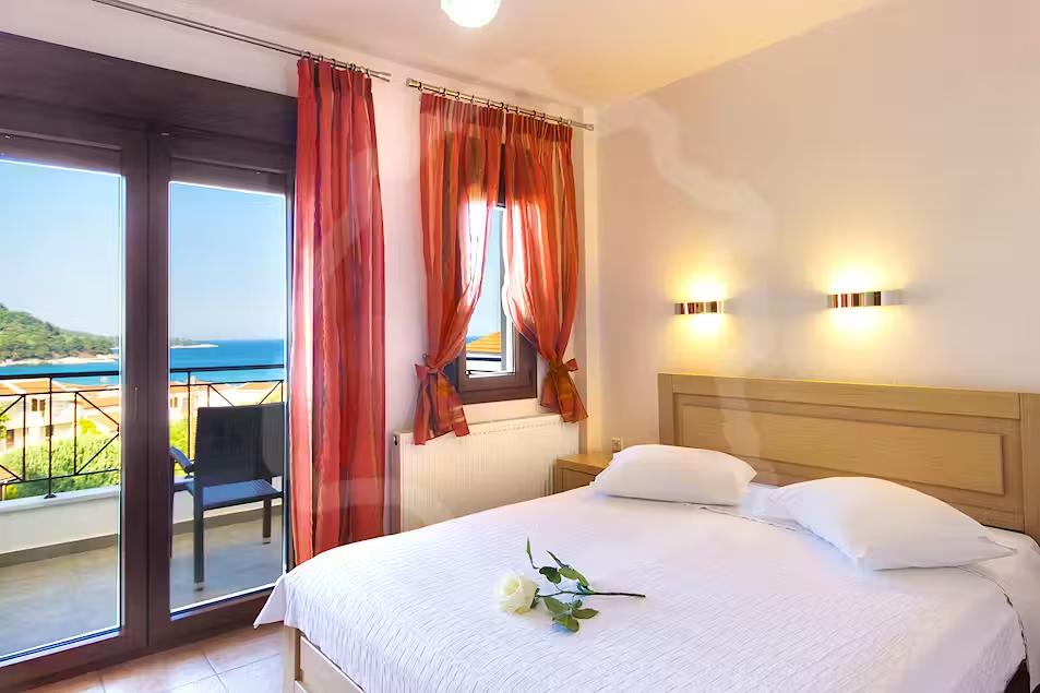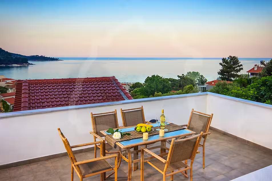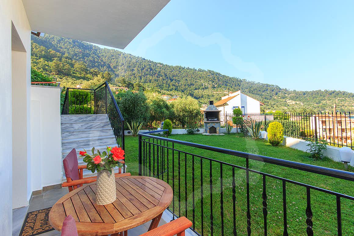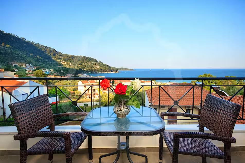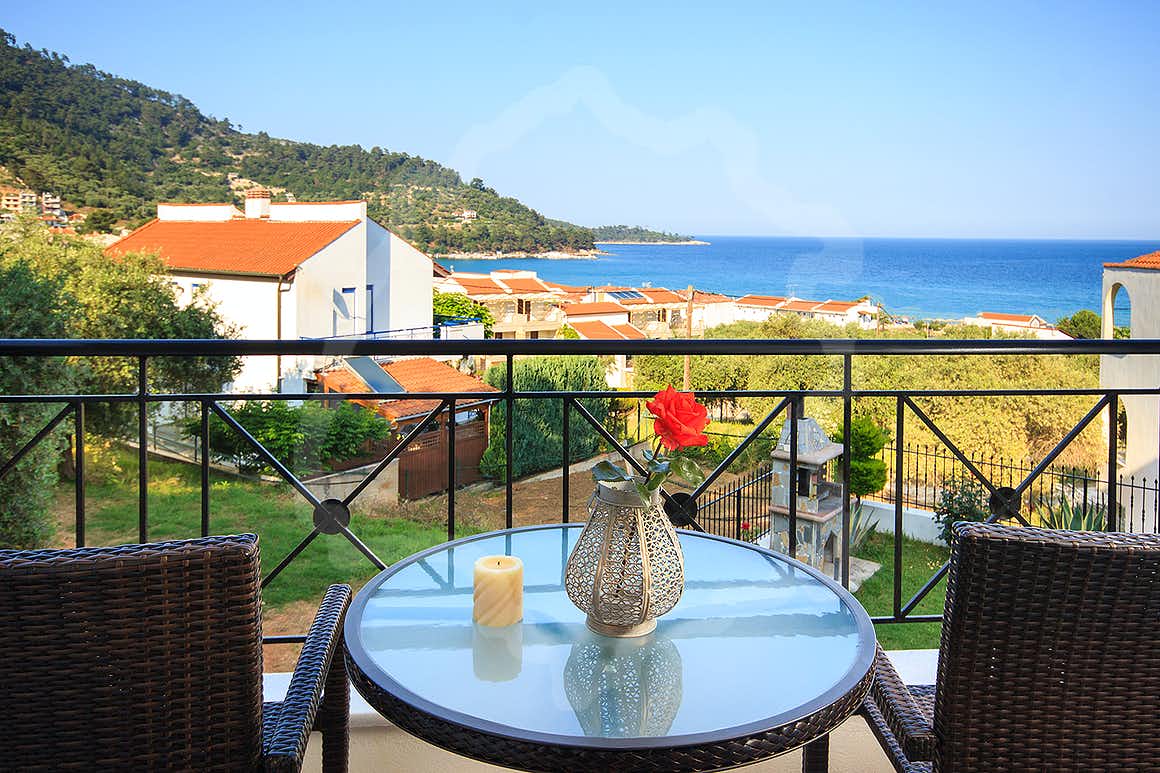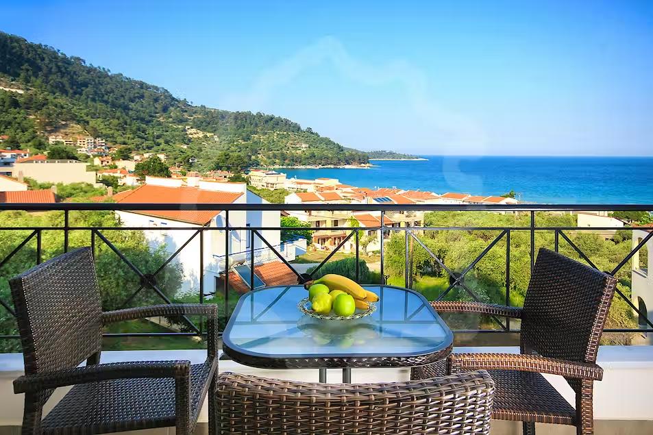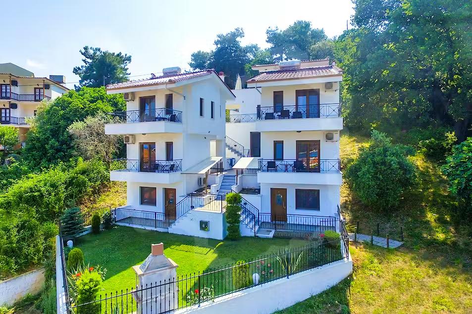 Cazare premium în Thassos aproape de Golden Beach, cu mezonete și studiouri moderne, WiFi, aer condiționat, balcon privat, parcare, grădină și facilități complete pentru vacanțe relaxante.