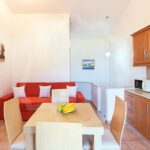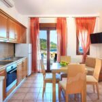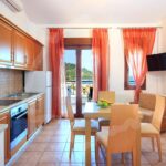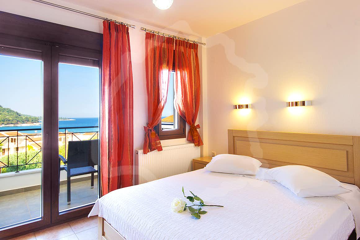 Complexul include mezonete spațioase, concepute pentru confortul familiilor și grupurilor mici. Nivelul superior dispune de living, bucătărie complet utilată și baie modernă. Livingul este dotat cu canapea extensibilă și mobilier adaptat pentru copii. Dormitorul matrimonial este amplasat la nivelul inferior, oferind intimitate și liniște. Balconul privat permite contemplarea mării albastre și a peisajului marin. Designul interior este funcțional, aerisit și orientat către relaxare.