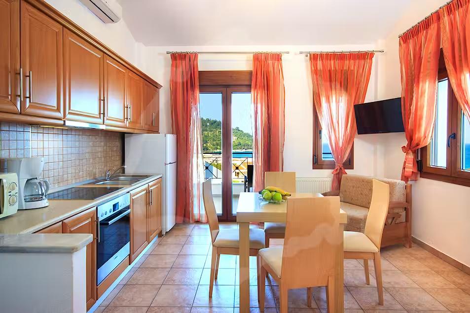 Facilitățile mezonetelor includ internet WiFi, aer condiționat și televiziune prin cablu. Bucătăria este echipată cu frigider, cuptor, cuptor cu microunde și aparat de cafea. Sunt disponibile fierbător electric, uscător de păr, fier de călcat și spații de depozitare. Unele mezonete beneficiază de mașină de spălat rufe. Aceste dotări susțin un sejur confortabil pe termen scurt sau mediu. Cazarea în Thassos devine astfel eficientă și lipsită de griji.