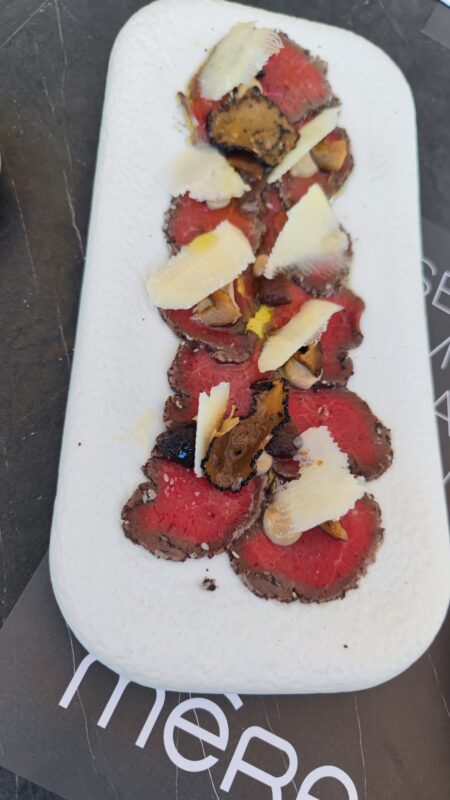 Fiecare preparat din meniul Mera reprezintă o experiență culinară unică. De la salate cu ingrediente proaspete, fructe coapte și combinații surprinzătoare, la pește, carne sau fructe de mare pregătite impecabil, fiecare farfurie este o demonstrație de rafinament. Recomandările personalului completează experiența, explicând proveniența ingredientelor și modul de preparare. Meniul este conceput astfel încât să ofere atât opțiuni gourmet, cât și preparate consistente, satisfăcând cerințele clienților care apreciază atât calitatea, cât și cantitatea.