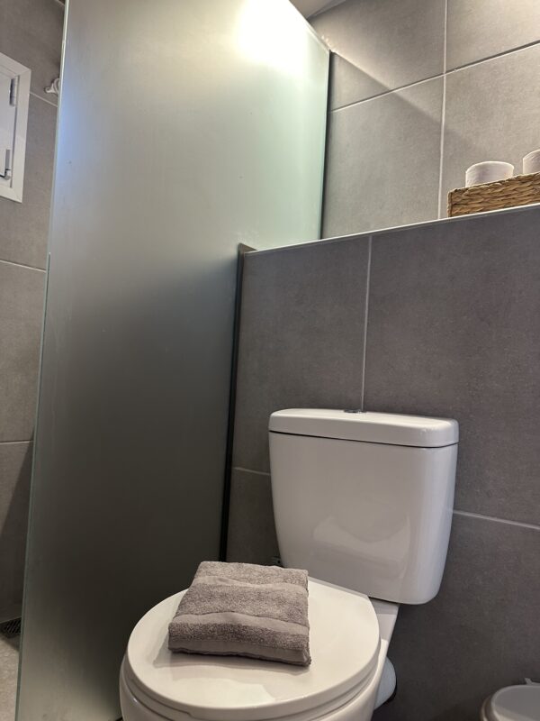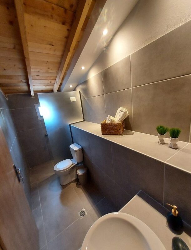 Designul modern și facilitățile asigură confortul a 2-3 persoane, fiind ideal pentru un cuplu sau o familie cu un copil. În plus, curtea privată oferă zonă de relaxare, grătar și iluminat nocturn, creând un cadru perfect pentru serile de vară. Baia include duș, iluminare plăcută și produse esențiale de îngrijire personală. Printre dotările apartamentului se numără aer condiționat, TV, internet Wi-Fi de mare viteză și parcare gratuită.