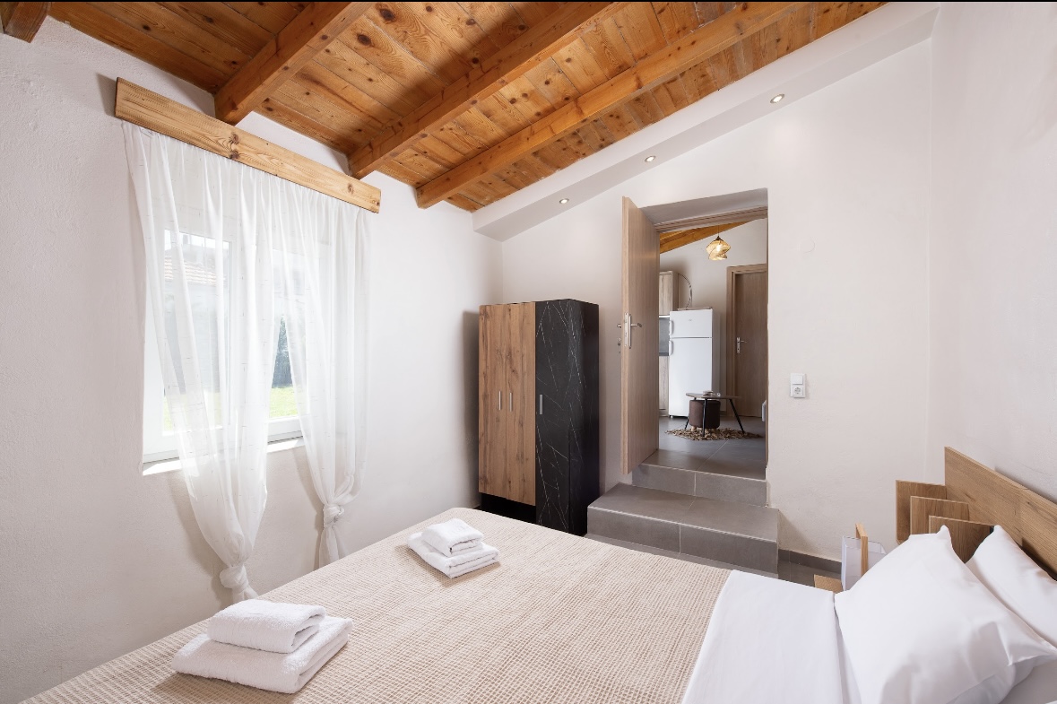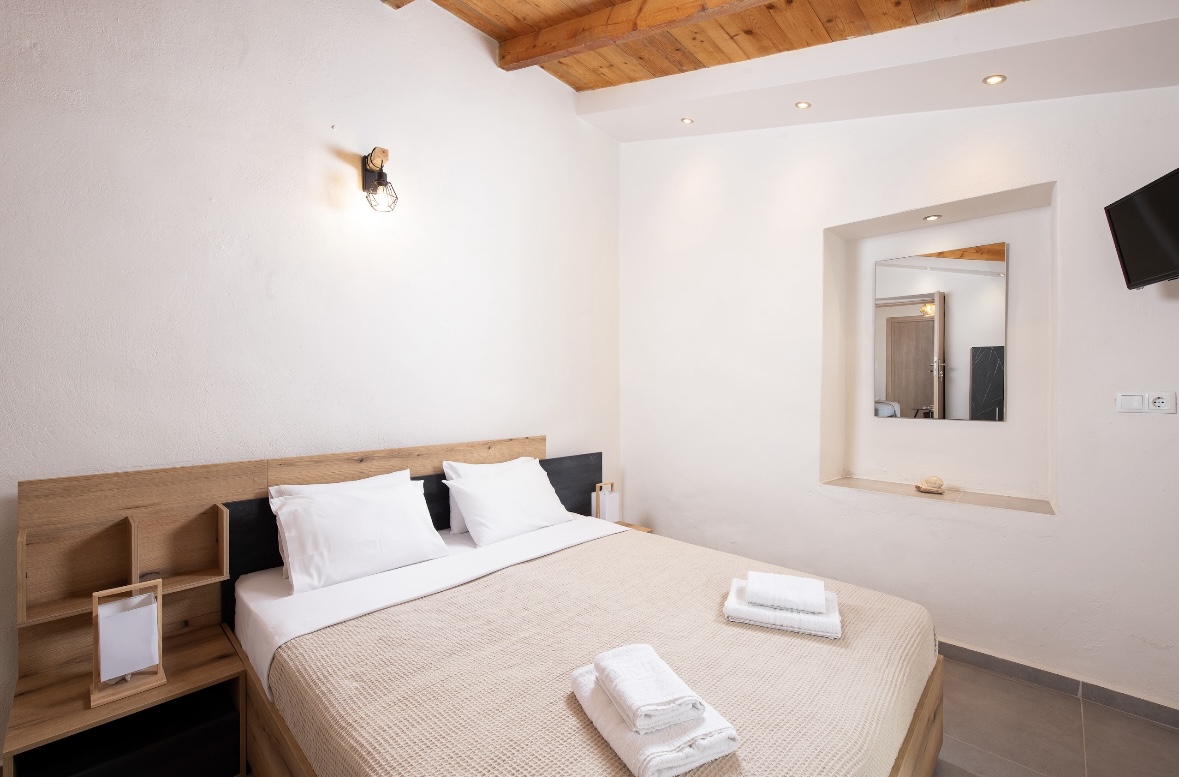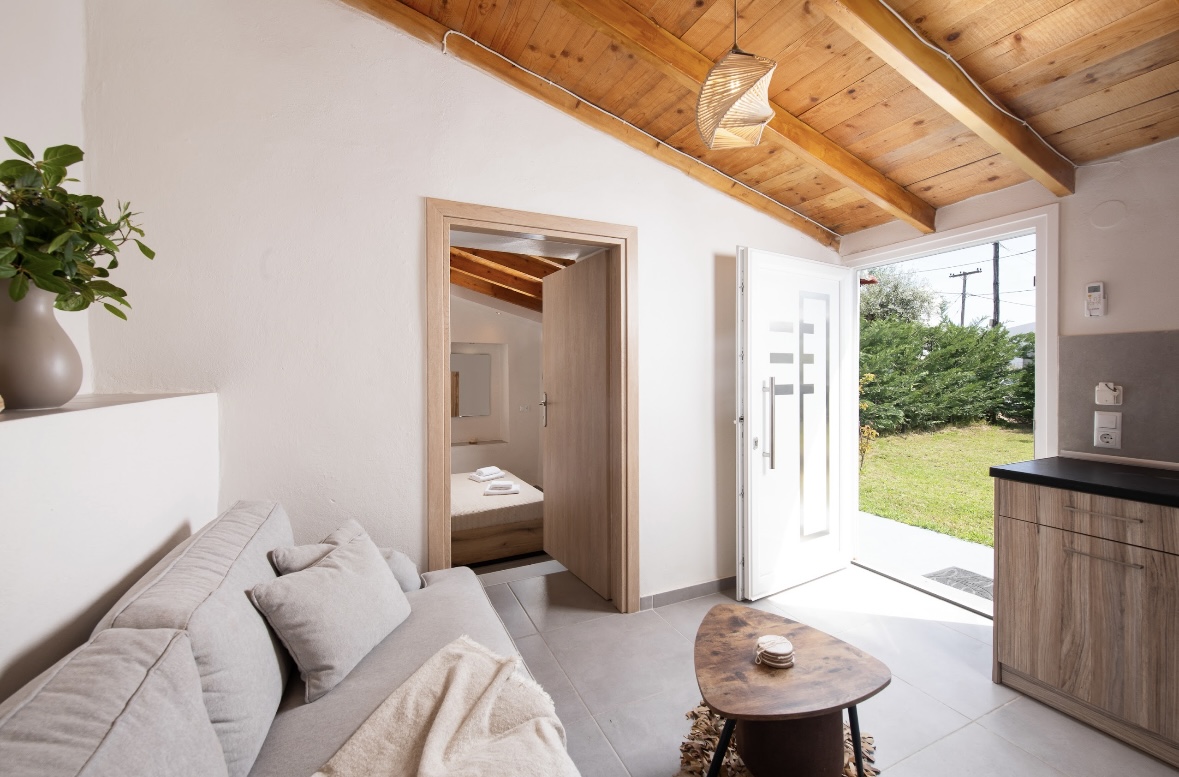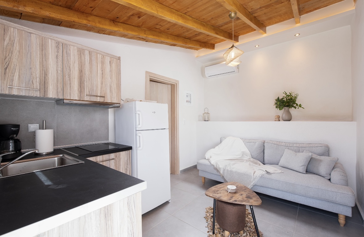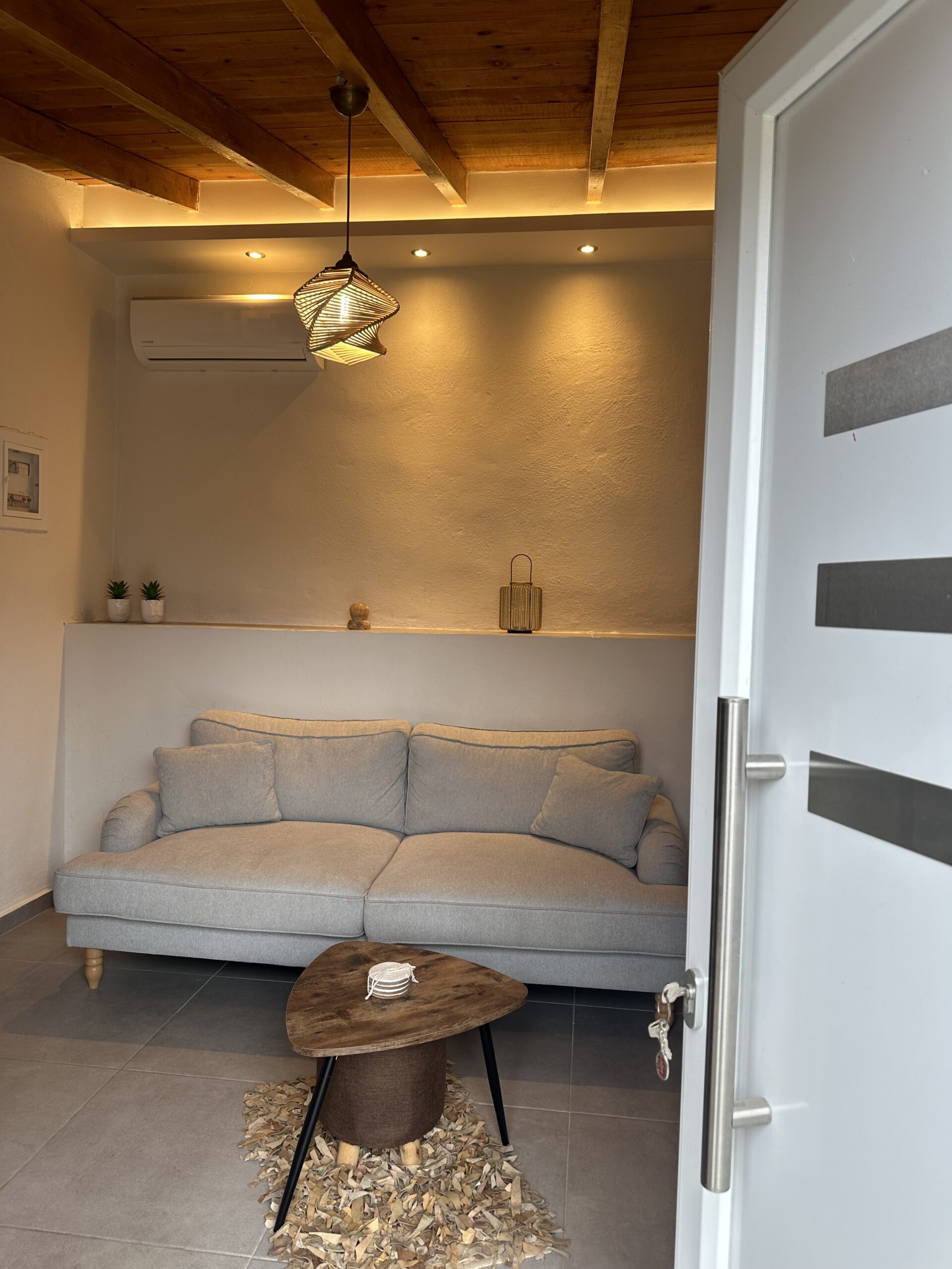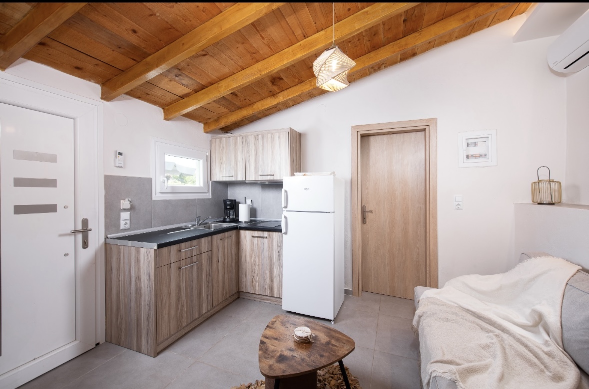 Situat la doar 200 de metri de centrul satului Limenaria si 380 de metri de mare, apartamentul Mint House oferă o experiență de cazare plăcută și relaxantă. Acest apartament complet echipat dispune de un dormitor cu dulap, baie modernă, living spațios cu canapea și ușă de siguranță. Bucătăria este dotată cu frigider, plită electrică și toate ustensilele necesare, oferind confort și funcționalitate pentru o ședere fără griji. Priveliștea către curtea privată contribuie la o atmosferă liniștită și intimă.