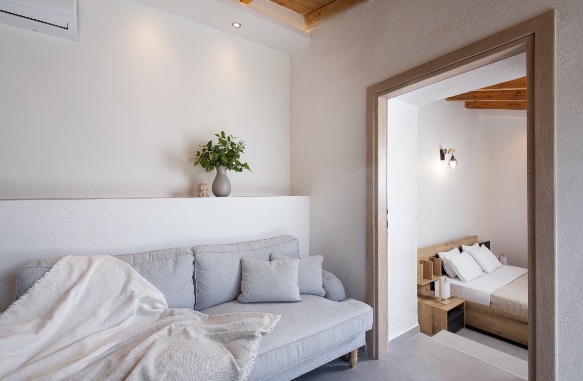 Animalele de companie sunt acceptate, însă fumatul este permis doar în spațiile exterioare. Amplasarea pe un drum principal facilitează accesul rapid către punctele de interes din zonă. Centrul satului se află la doar cinci minute de mers pe jos, unde vizitatorii pot descoperi taverne tradiționale, restaurante cu preparate grecești autentice și baruri cu cocktailuri și vedere la mare.