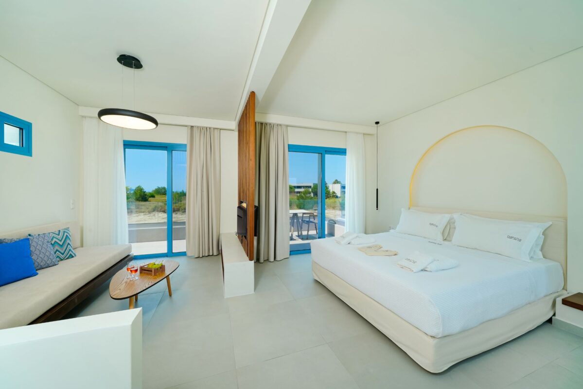 Complexul se remarcă prin lux, simplitate și un design de înaltă calitate, armonizând alb pur, albastru grecesc și aurul soarelui pentru a oferi cea mai bună experiență de sejur în Thassos.
