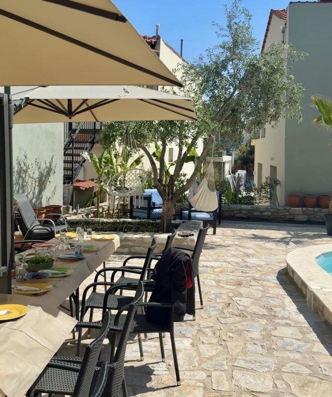 Olea Apartments este situat în stațiunea Potos, insula Thassos, într-o zonă apreciată pentru accesibilitate și liniște. Proprietatea se află la aproximativ 600 metri de plaja Potos, distanță parcursă pietonal în maximum zece minute. Amplasarea permite acces rapid către restaurante, cafenele, supermarketuri și magazine locale. În același timp, locația oferă un cadru plăcut, ferit de aglomerație și zgomot. Această combinație transformă Olea Apartments într-o opțiune optimizată pentru cazare în Potos, Thassos.