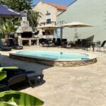Zona exterioară este comună și este concepută pentru relaxare și socializare. Aceasta include un jacuzzi spațios, cu capacitate de până la doisprezece persoane. Sunt disponibile șezlonguri confortabile și umbrele pentru protecție solară. Oaspeții pot utiliza zona de grătar, dotată cu spații de ședere adecvate. De asemenea, există o zonă verde de relaxare, cu hamace amplasate sub pini. Aceste facilități oferă umbră naturală și confort pe întreaga durată a zilei.