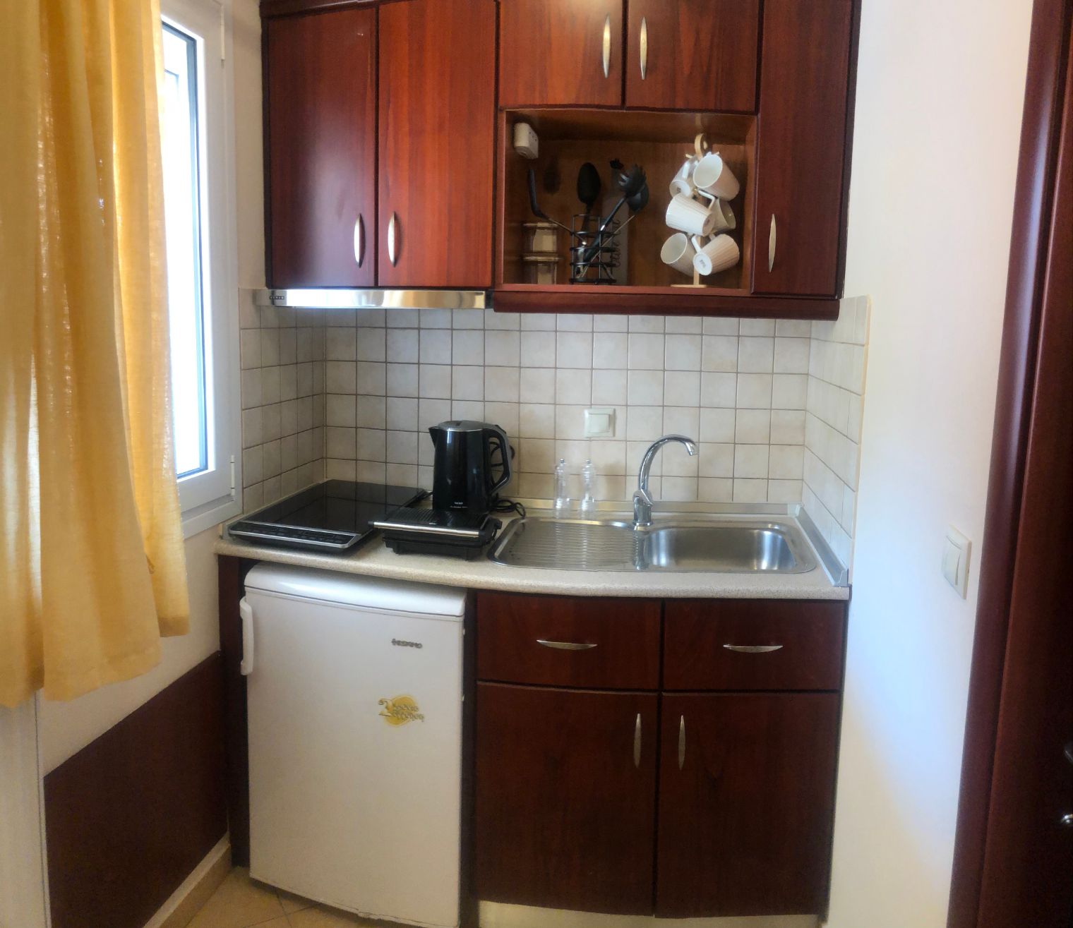 Studioul are o suprafață de 30 de metri pătrați, este elegant mobilat și cu dotări complete, pentru o vacanță confortabilă. Având un pat dublu și o canapea extensibilă, studioul poate găzdui până la patru persoane. Spațiul este bine organizat, iar decorațiunile sunt agreabile.