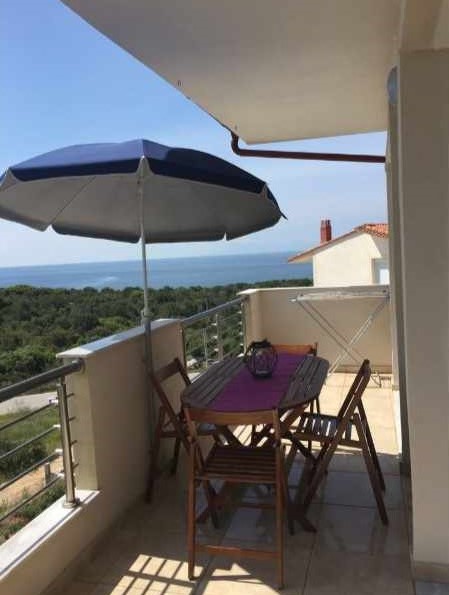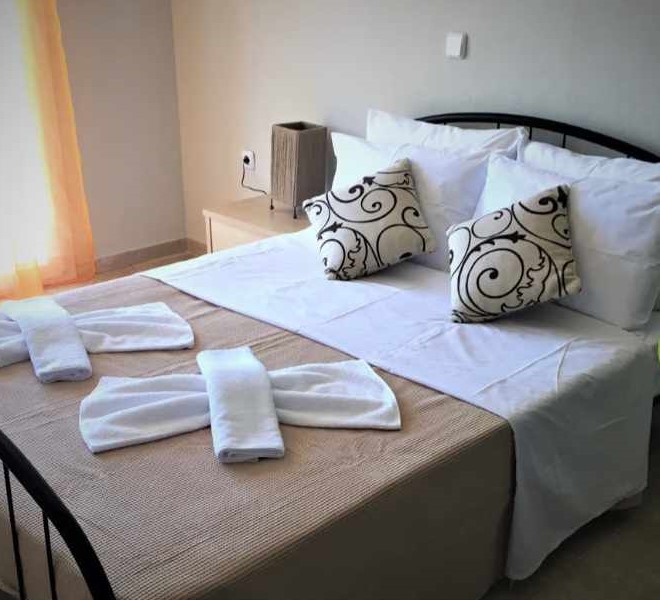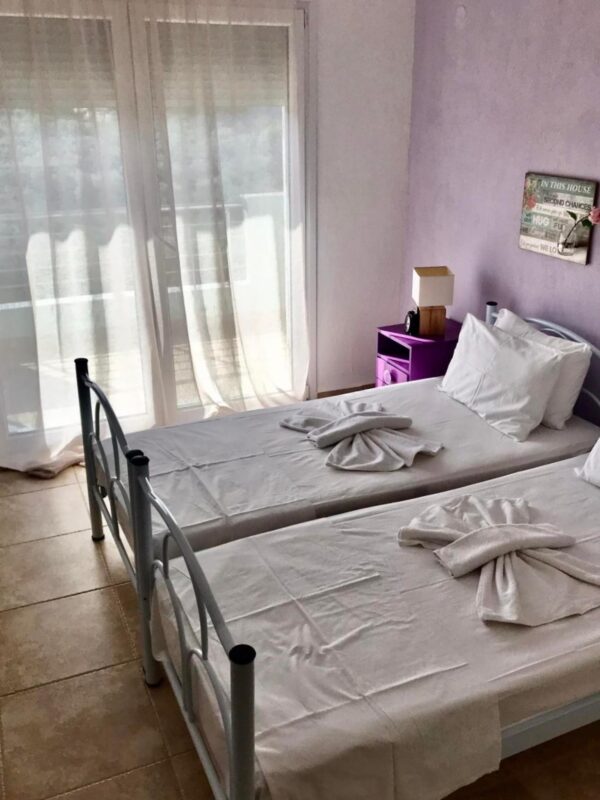 Apartamentul de la parter are două paturi de o persoană, un pat dublu și un fotoliu extensibil. Se pot caza cinci persoane (4 adulți +1 copil).