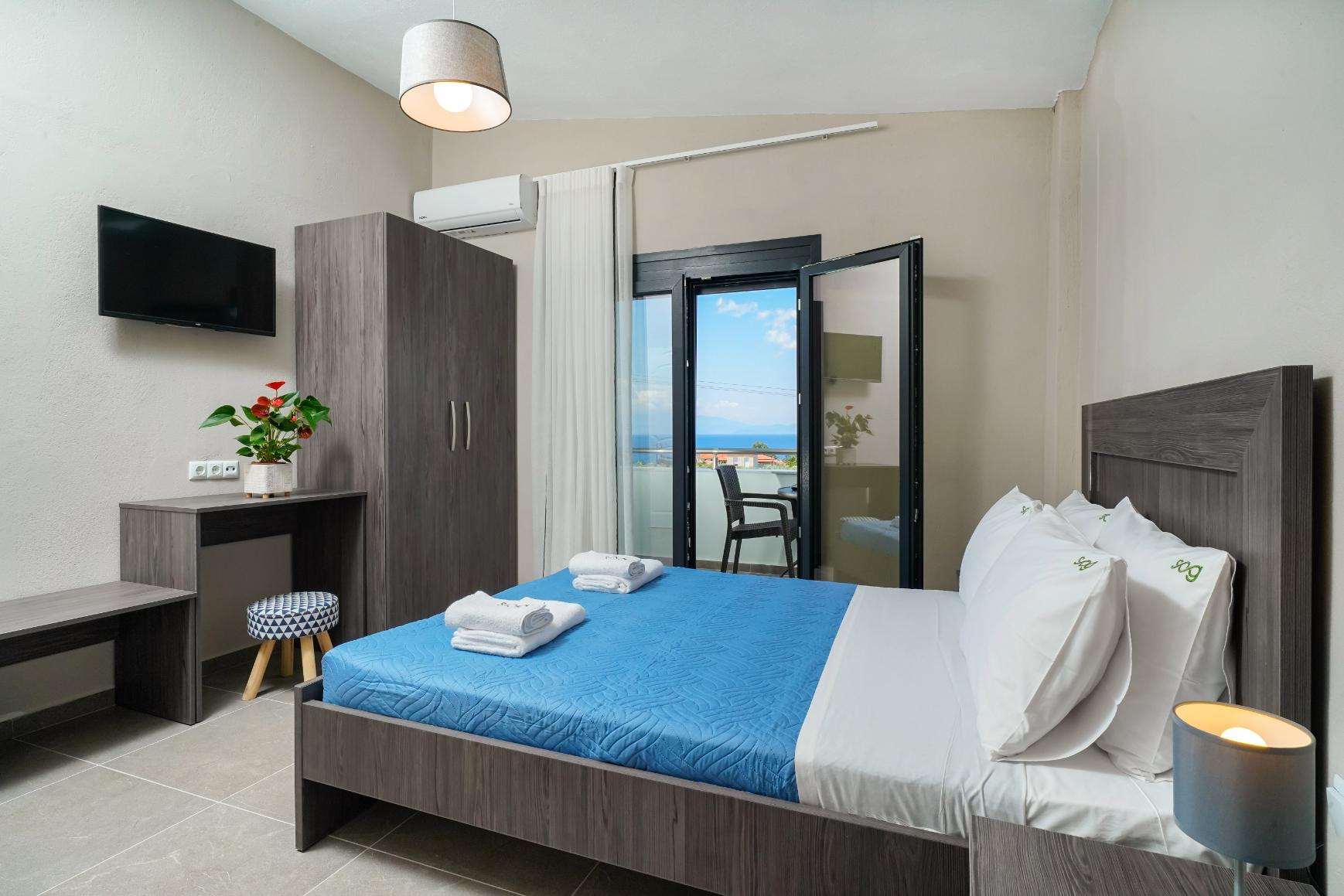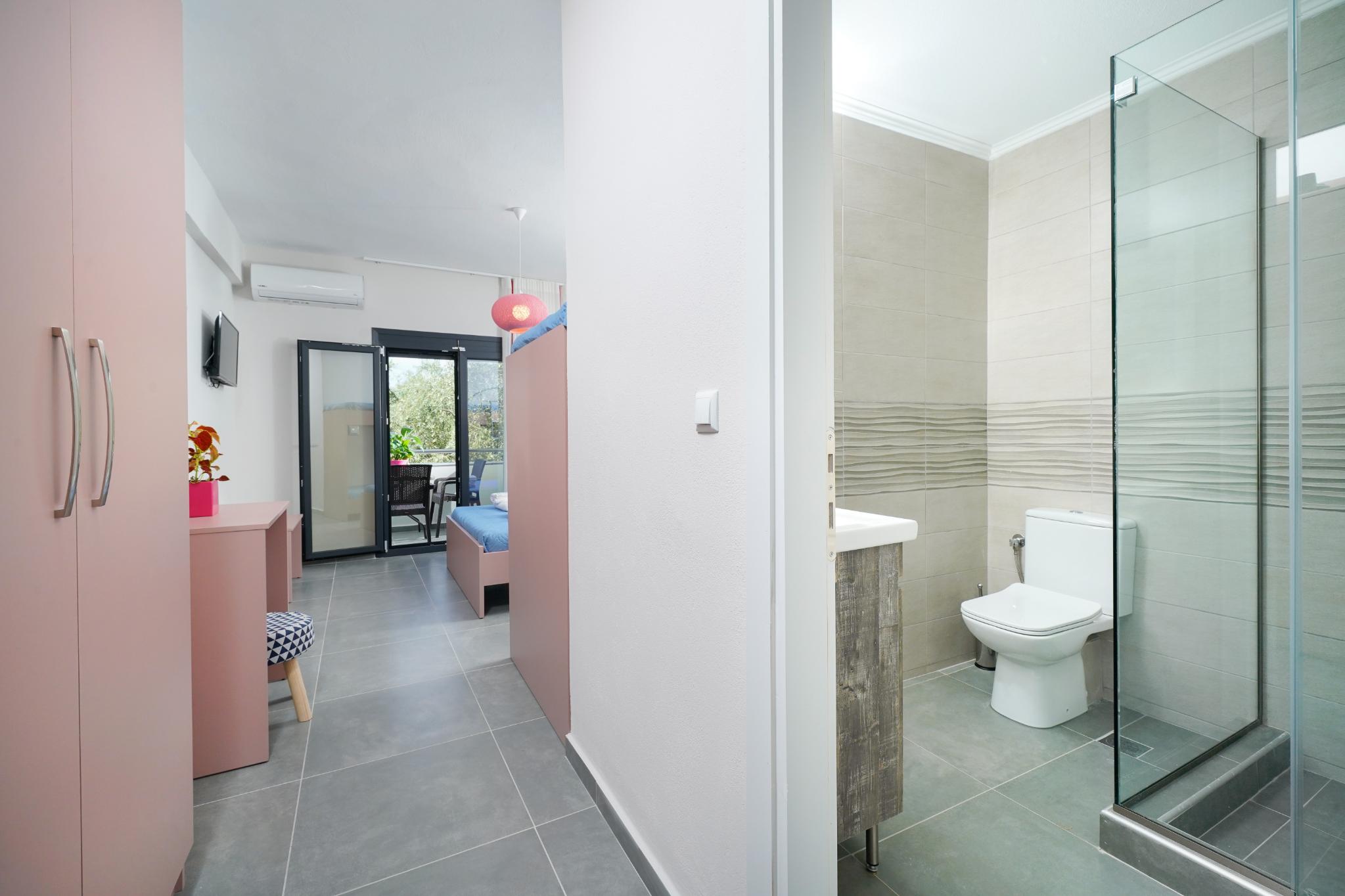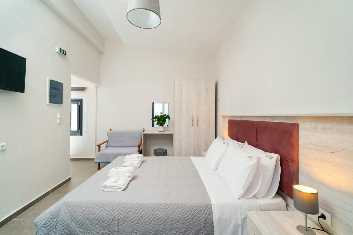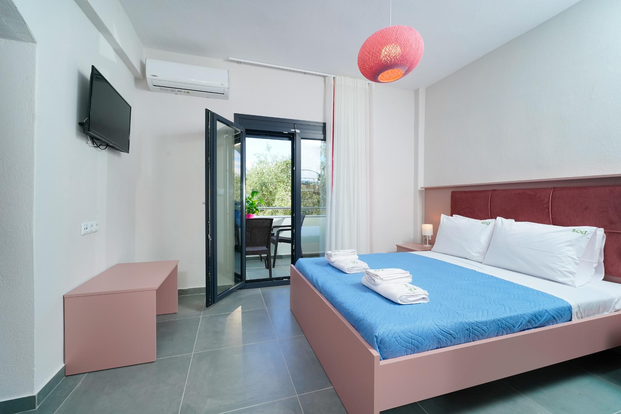 Am fost cazați la Sofia’s Olive Grove 14 zile, este o locație mai retrasă și foarte liniștită, loc de parcare pentru mașină, clima funcționează cum trebuie, curățenie în camere, baia este mare cu cabina de duș mare, are și loc de grătar în curte, în cameră este o chicinetă mică dar utilată cu tot ce este nevoie.