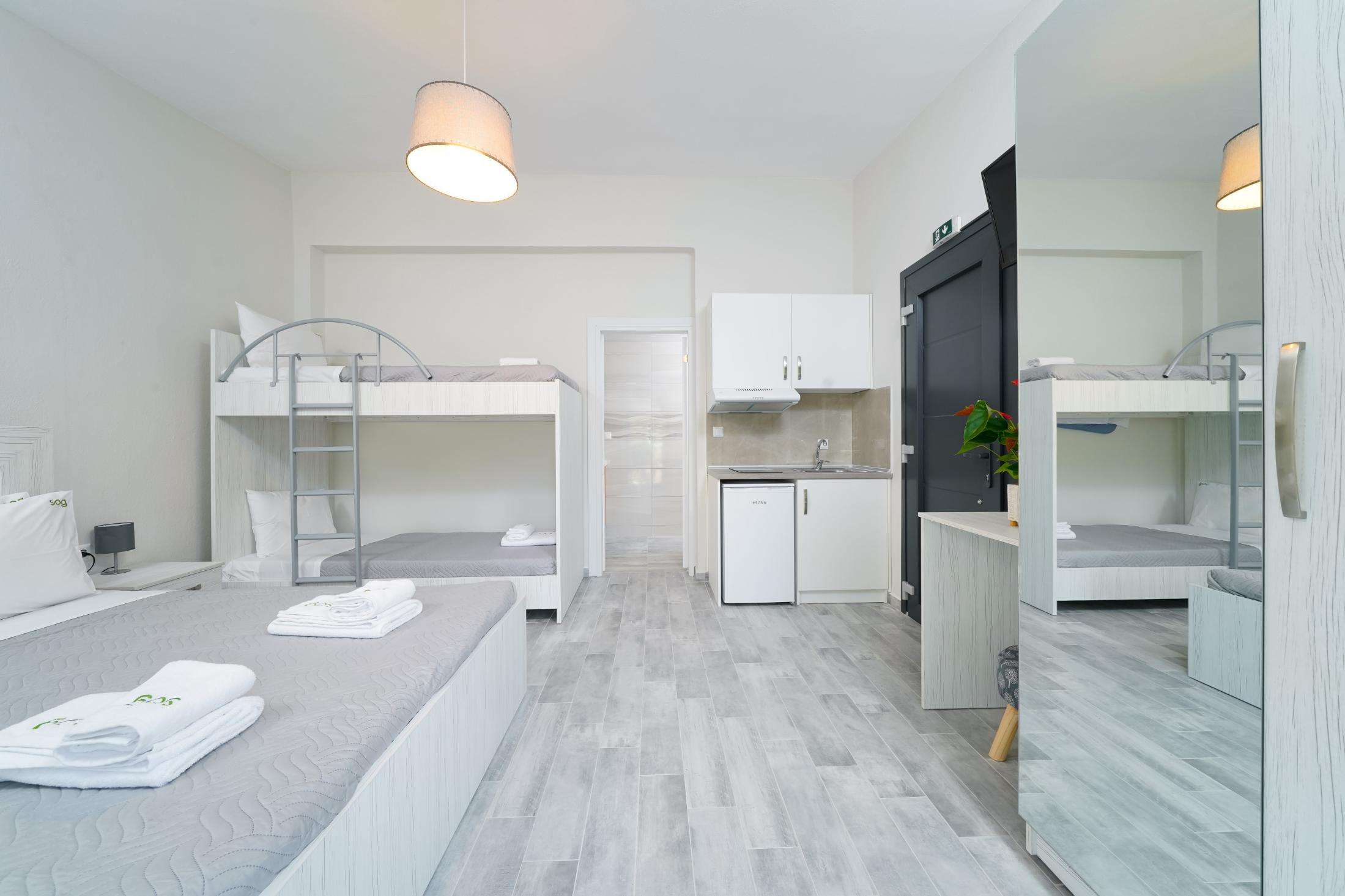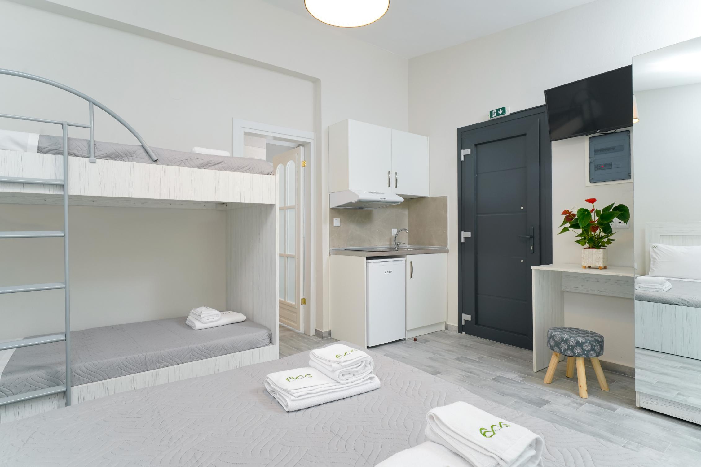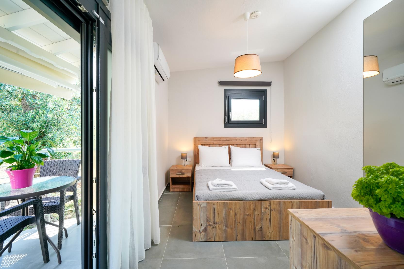 Facilități precum A/C, Wi-Fi gratuit, plase la geamuri, chicinetă, frigider, fierbător de apă, mixer frappe, sandwich toaster, TV cu ecran plat, dulap, fier de călcat, uscător de păr, suport de uscare pentru haine și pat pentru copii disponibile (la cerere) completează șederea în acest loc frumos.