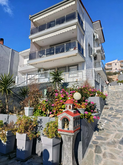 Sotiria P. Seaside Luxury Villa reprezintă un apartament modern, dispus pe două niveluri, situat într-o zonă rezidențială apreciată. Proprietatea este amplasată la etajele doi și trei ale clădirii, excluzând parterul. Configurația pe două etaje oferă un grad ridicat de confort și funcționalitate. Accesul se realizează facil, iar structura locuinței este optimizată pentru șederi relaxante. Conceptul este destinat exclusiv utilizării rezidențiale, într-un cadru elegant. Apartamentul se adresează turiștilor care caută cazare premium aproape de mare.