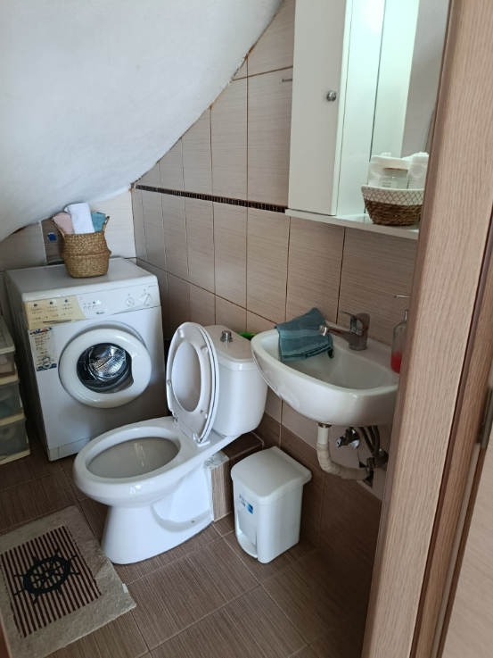 Etajul superior este destinat zonei de odihnă și intimitate. Sunt disponibile două dormitoare spațioase, amenajate pentru un somn odihnitor. Camerele sunt dotate corespunzător pentru cazare de calitate. Apartamentul poate găzdui confortabil până la șase persoane. Configurația este ideală pentru familii sau grupuri restrânse. Separarea clară a zonelor asigură un plus de confort.