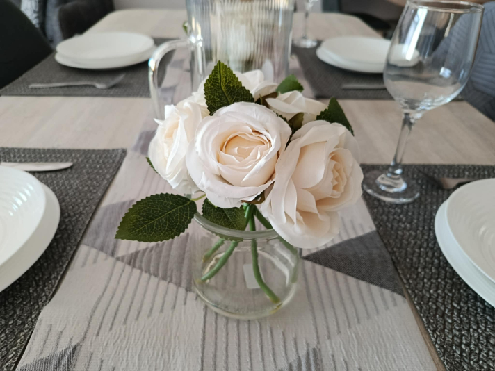 Nivelul inferior include un living generos și o zonă de dining bine delimitată. Bucătăria este complet integrată și permite prepararea eficientă a meselor zilnice. Spațiul este luminos, aerisit și amenajat într-un stil contemporan. Zona de zi este gândită pentru relaxare și socializare. Mobilierul este funcțional și ales pentru utilizare practică. Distribuția camerelor favorizează confortul grupurilor sau familiilor.
