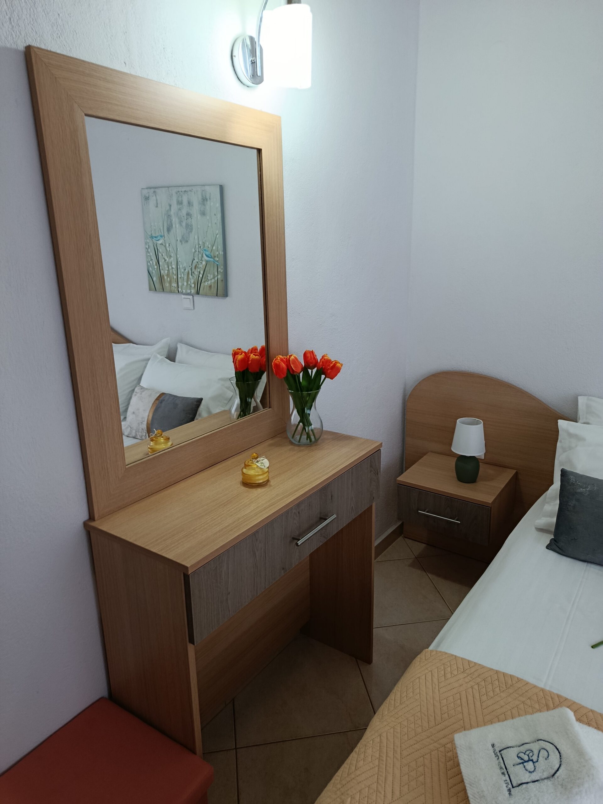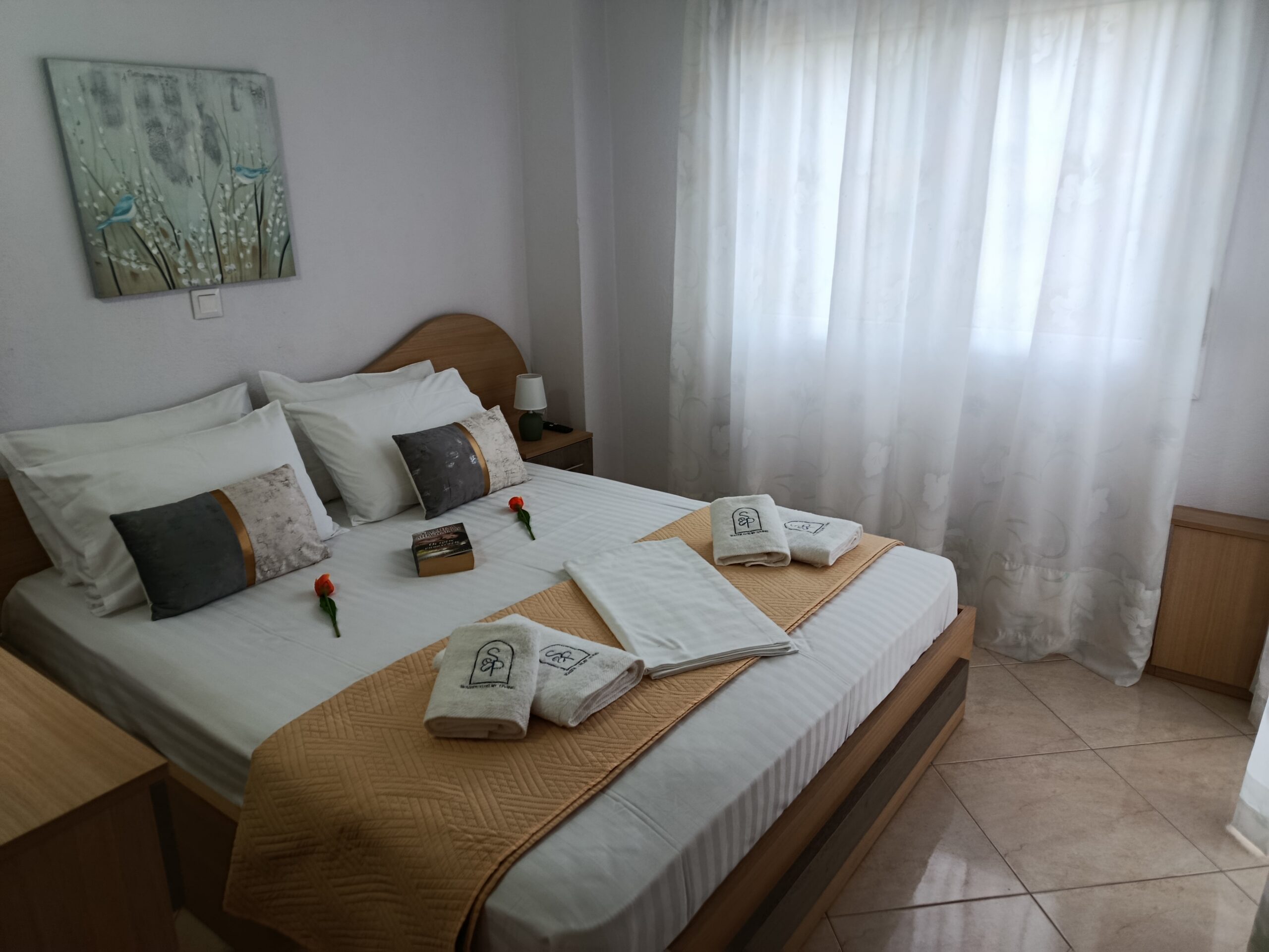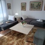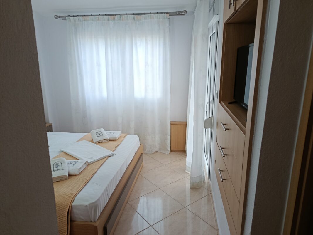 Etajul superior este destinat zonei de odihnă și intimitate. Sunt disponibile trei dormitoare spațioase, amenajate pentru un somn odihnitor. Camerele sunt dotate corespunzător pentru cazare de calitate. Apartamentul poate găzdui confortabil până la opt persoane. Configurația este ideală pentru familii sau grupuri restrânse. Separarea clară a zonelor asigură un plus de confort.