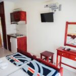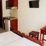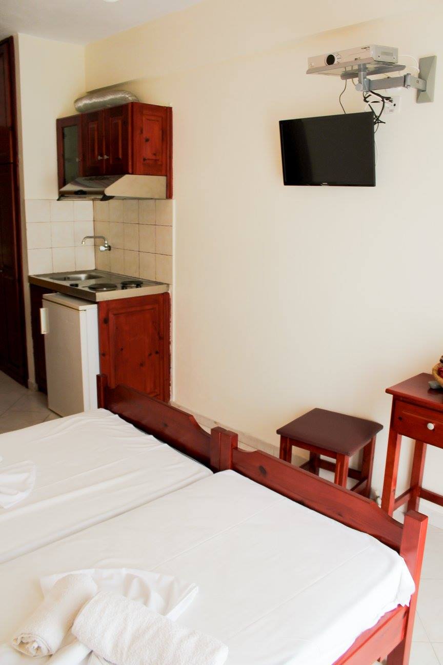 Cazarea vă oferă studiouri pentru două și trei persoane, cu chicinetă echipată (aragaz cu 2 plite, frigider, ustensile, ceainic electric), aer condiționat, TV, Wi-Fi (gratuit), uscător de păr, duș, balcon/terasă. Camerele mobilate simplu, vă asigură confortul pentru o vacanță plăcută.
