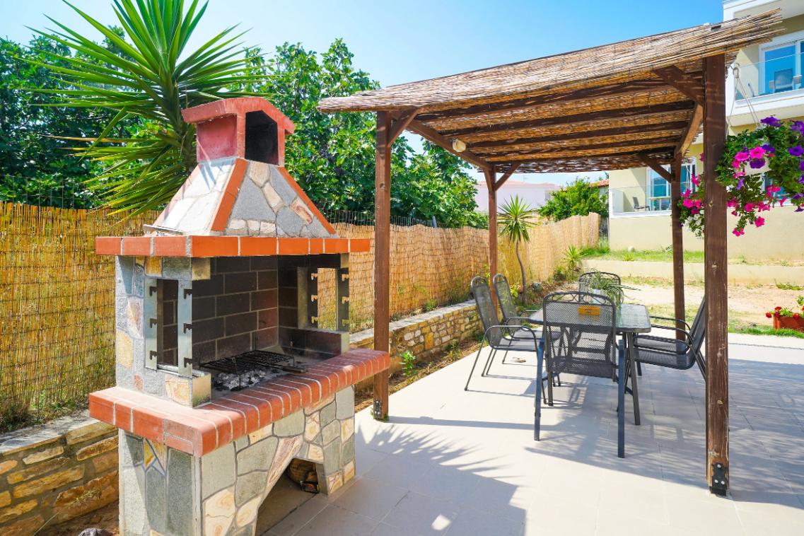 In grădină sunt amenajate loc de joacă pentru copii și grătar.