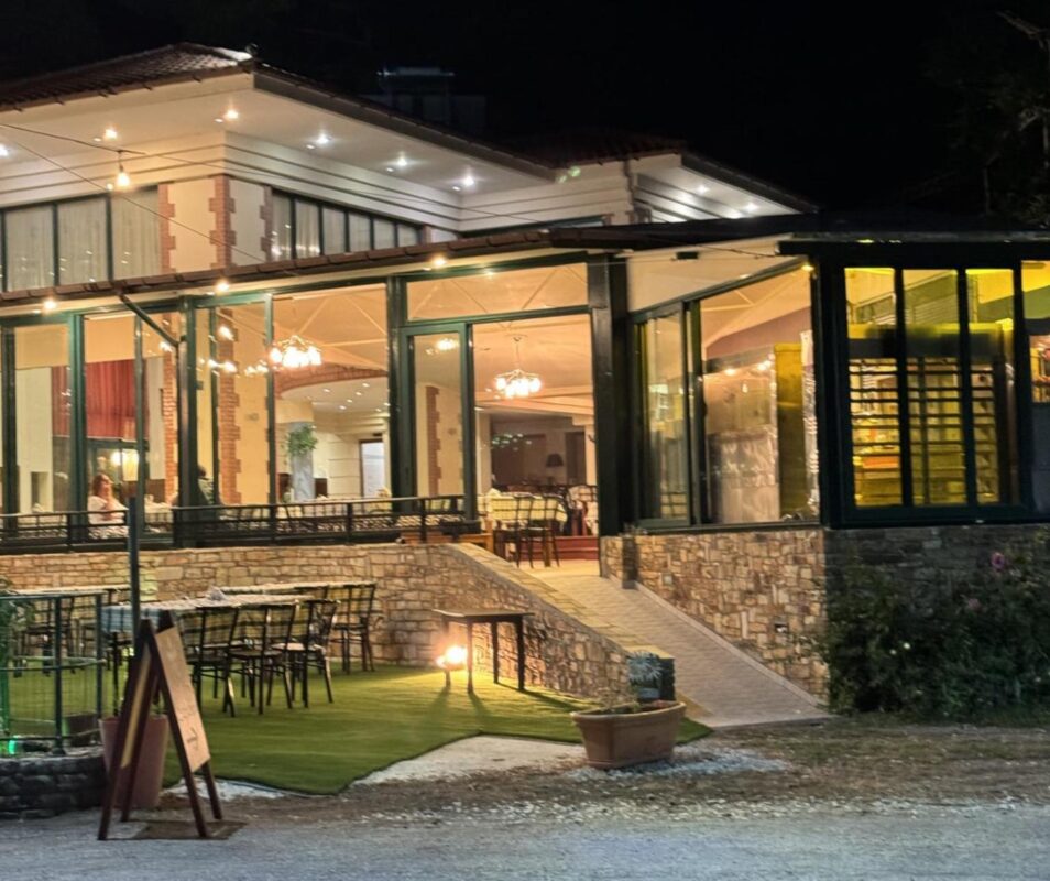 Taverna este renumită pentru preparatele tradiționale pregătite la proțap – miel, ied, porc și desigur, specialul kokoretsi.