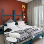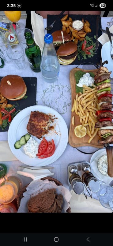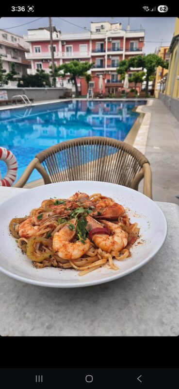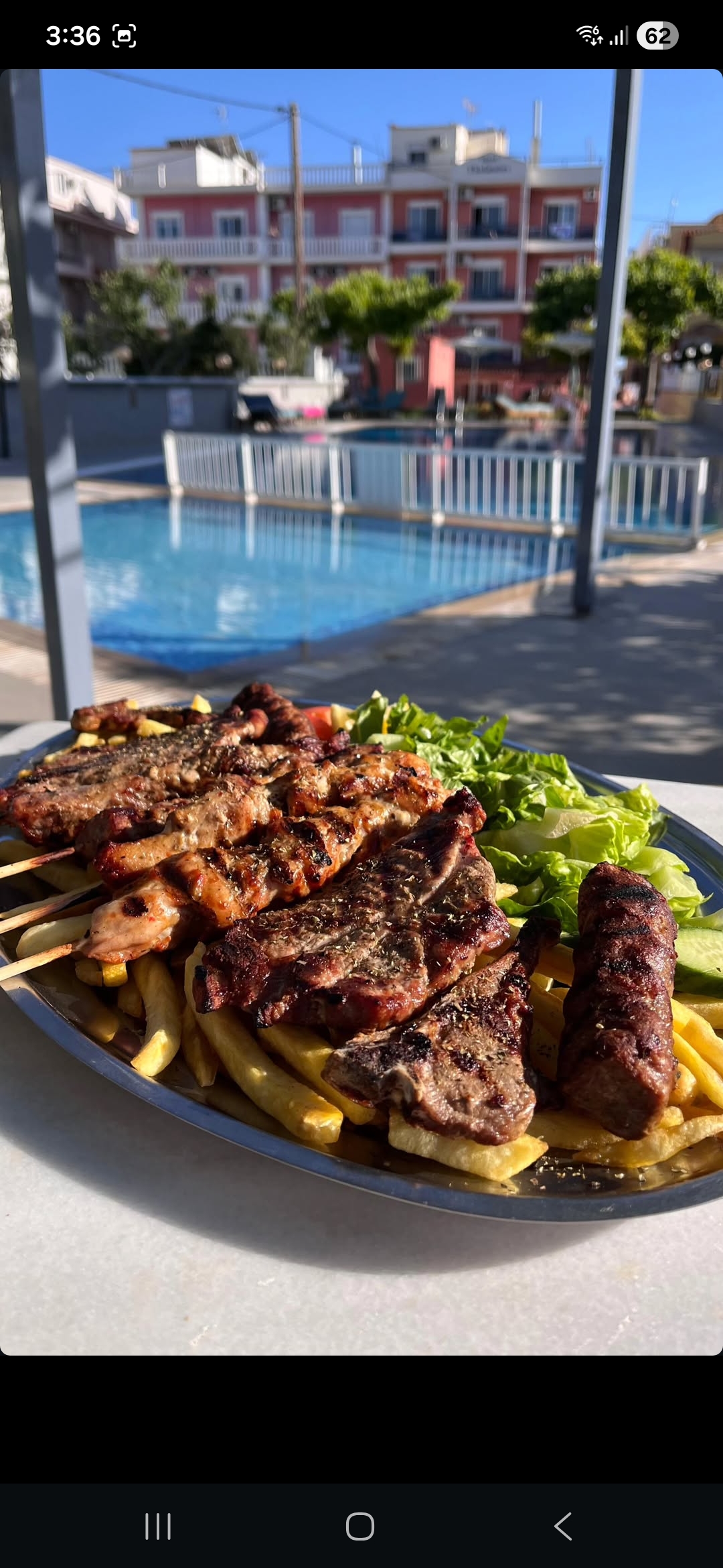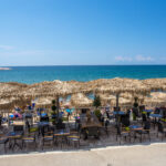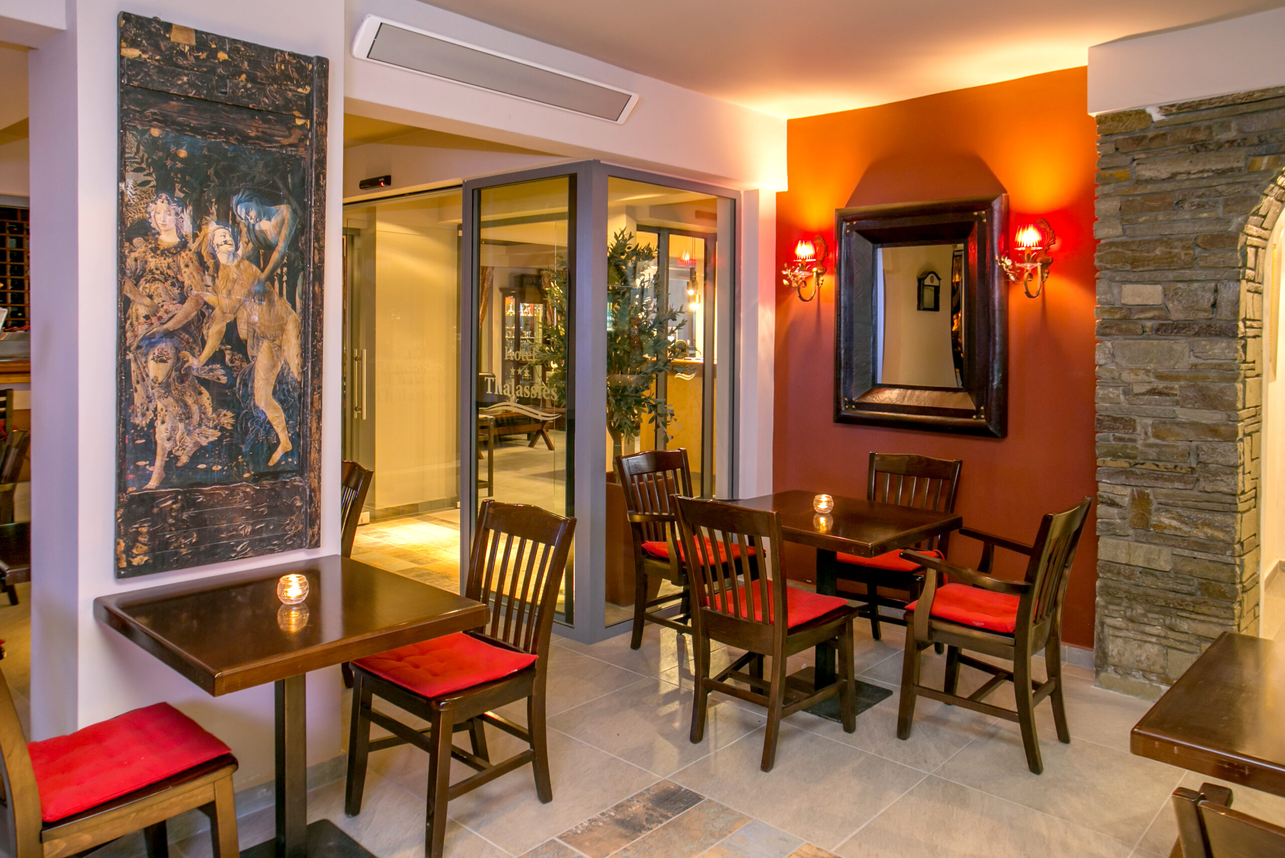 Oaspeții pot utiliza terasa cu specific mediteranean, situată lângă țărm. Acolo este disponibilă o tavernă apreciată pentru preparatele sale. Un bar pregătește băuturi răcoritoare pe tot parcursul zilei. Serviciile sunt valabile și pentru zona de plajă. Piscina poate fi folosită de toți vizitatorii. Există și o sală de fitness cu acces gratuit.