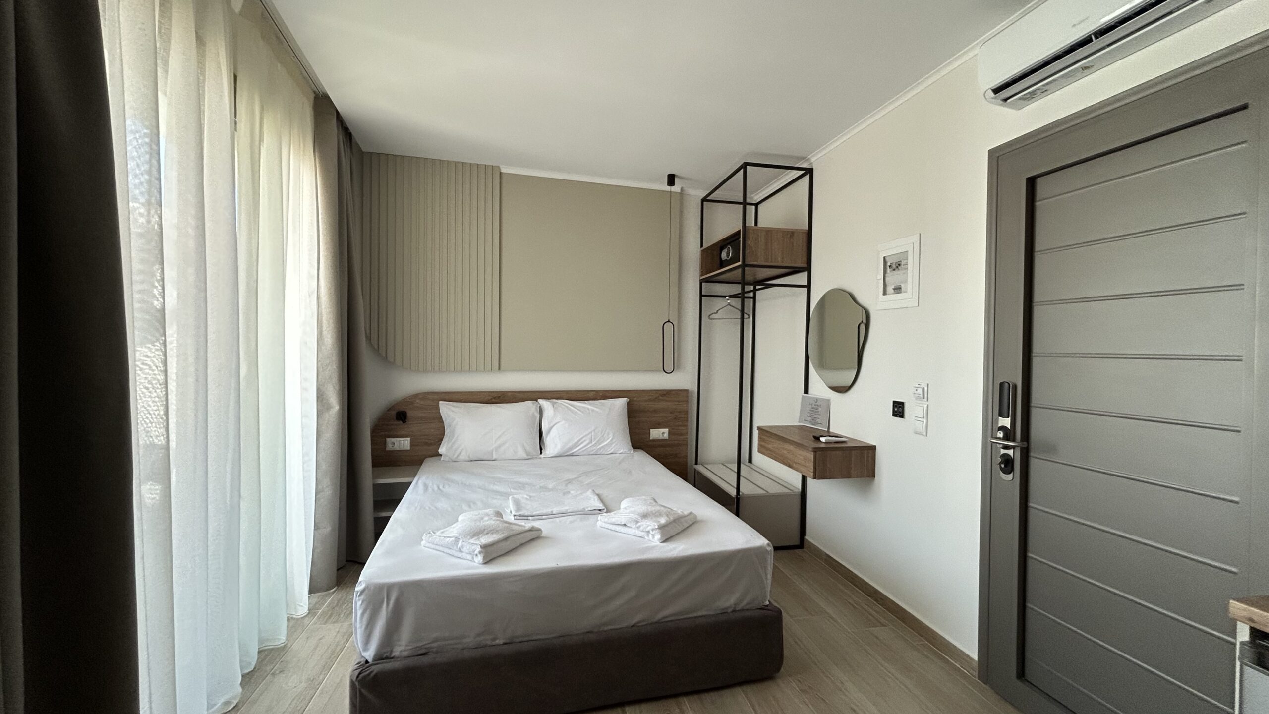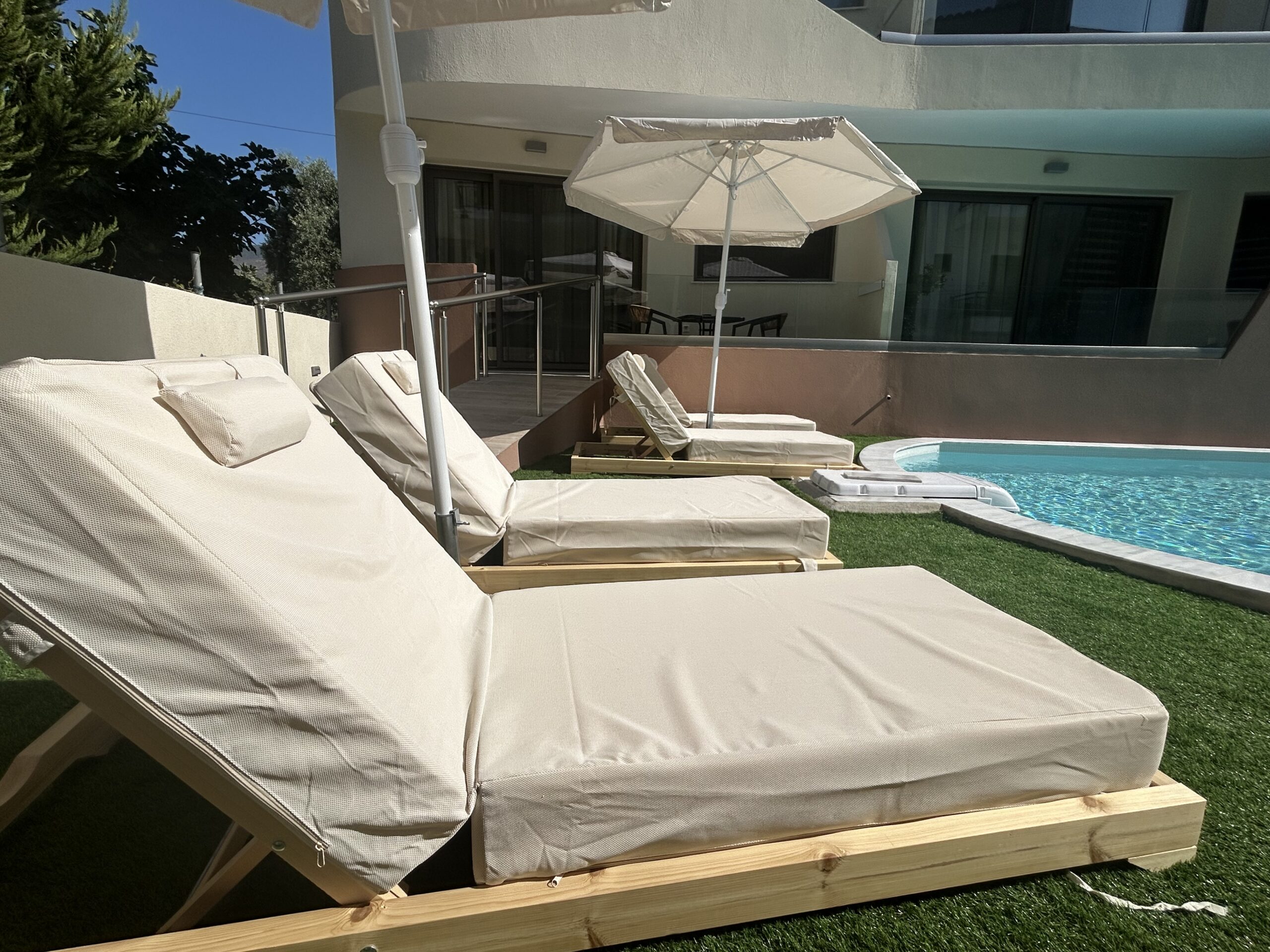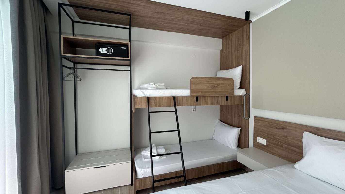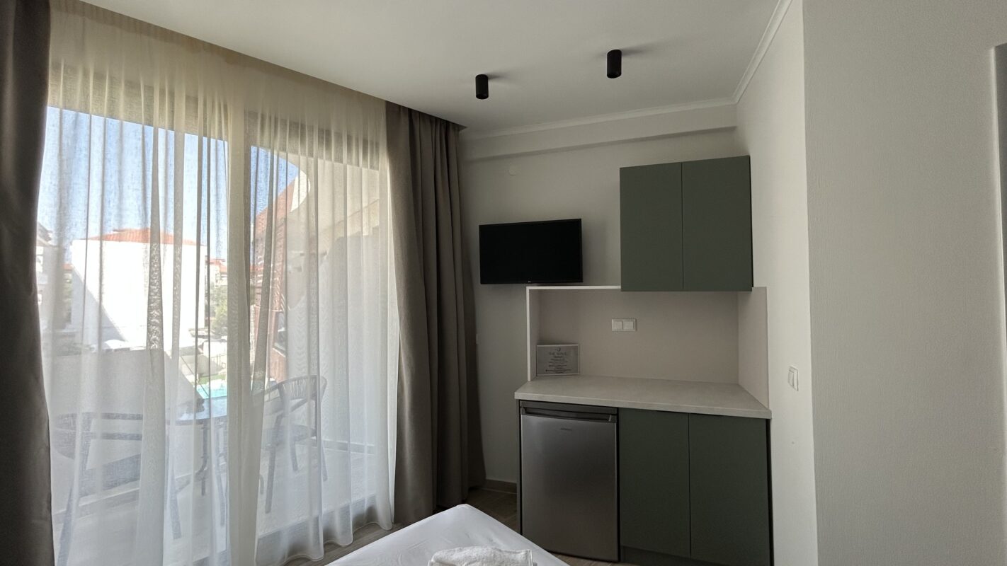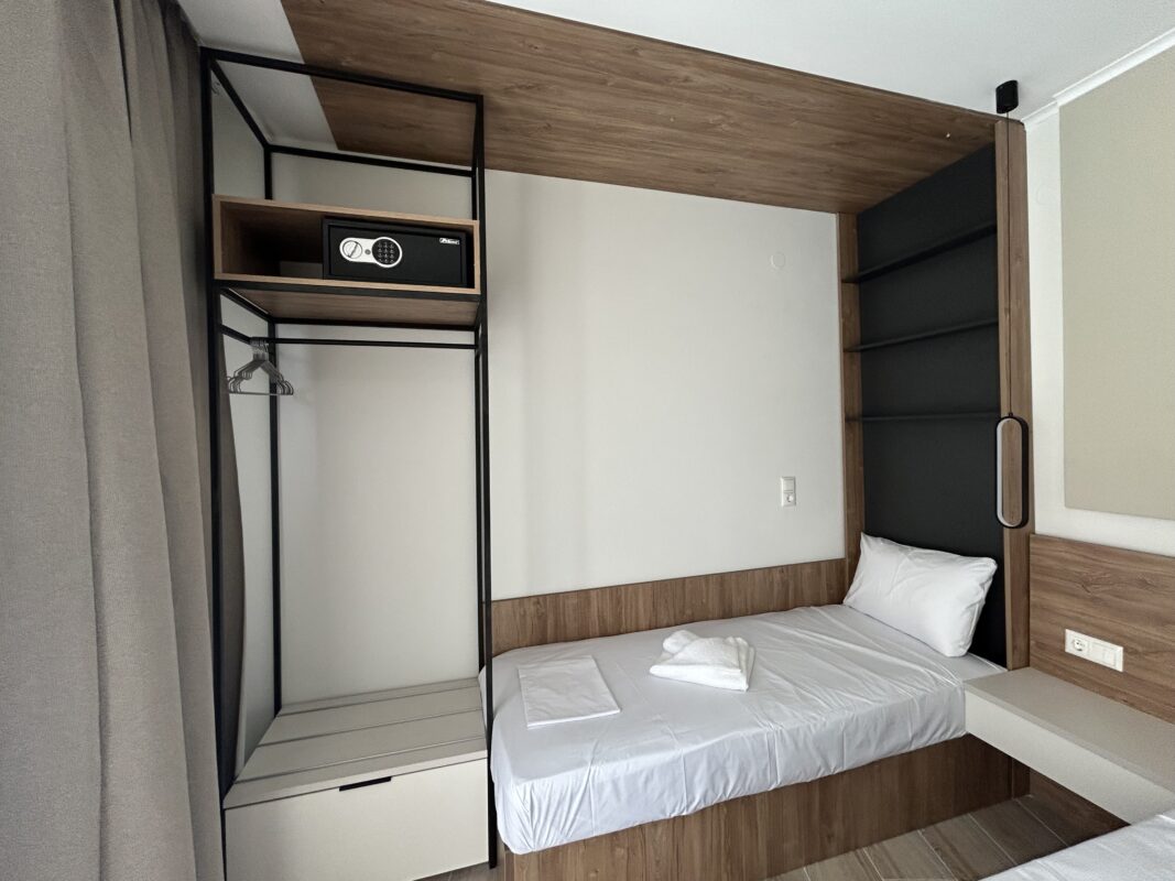 Camerele noastre moderne, recent construite, pot găzdui între două și patru persoane. Sunt potrivite atât pentru cupluri, cât și pentru familii sau grupuri mici care caută cazare convenabilă în Limenaria. Fiecare cameră este dotată cu aer condiționat, Wi-Fi gratuit și balcon privat. Balconul oferă vedere spre piscină sau spre drumul principal.