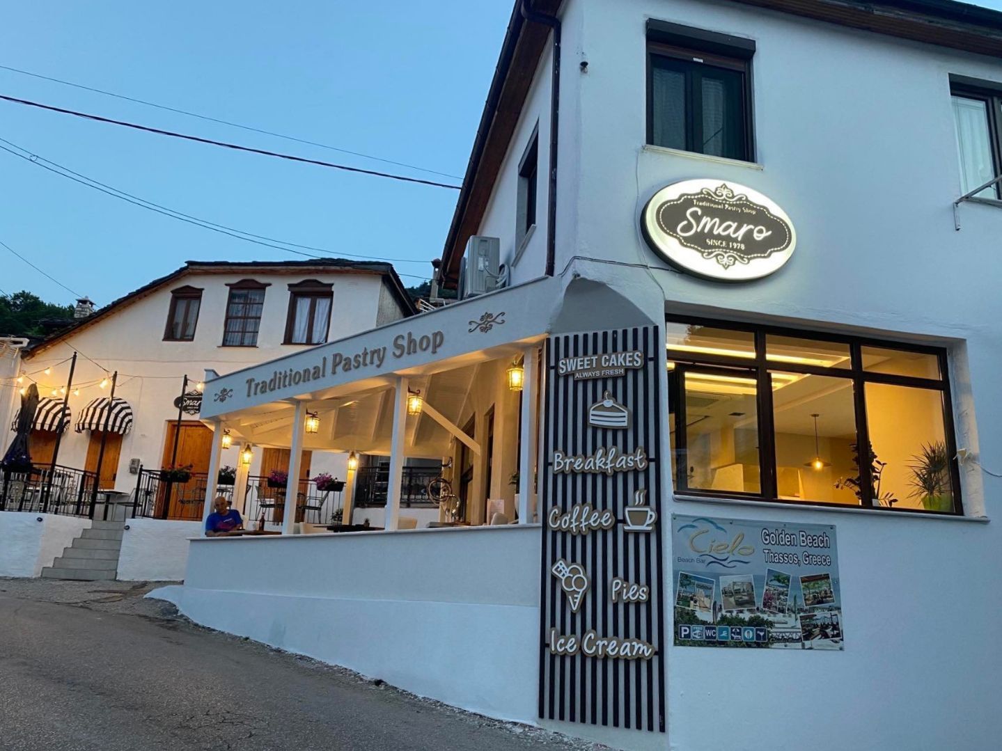 Pentru un popas sub umbra munților, în Panagia, Traditional Pastry Shop Smaro reprezintă opțiunea ideală. Descoperiți autenticitatea tradițiilor locale. Bucurați-vă de poate cea mai bună portokalopita din insulă! Smaro vă așteaptă să vă delectați cu aromele și tradițiile autentice.